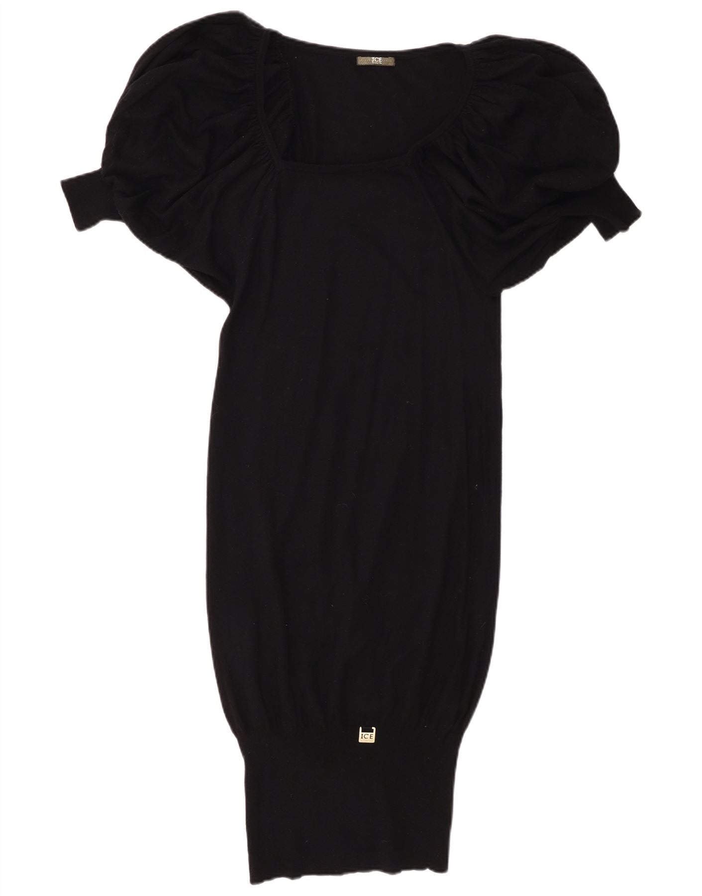 ICEBERG Rochie Jumper cu mâneci scurte pentru femei UK 10 Lână neagră mică