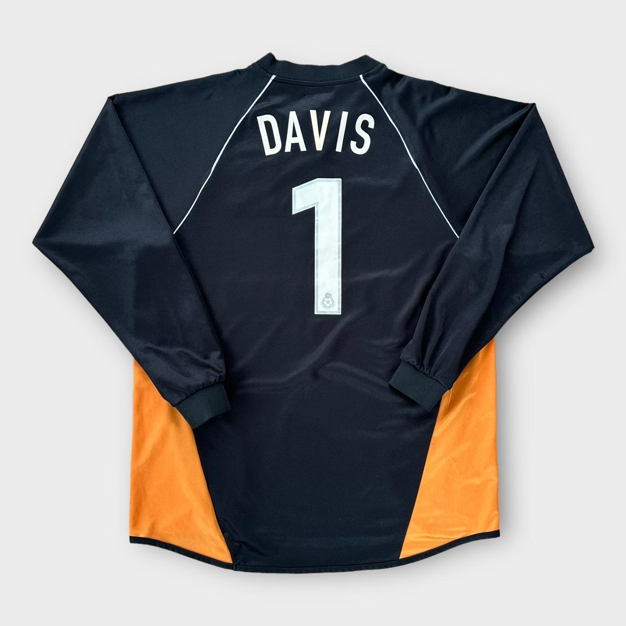 Tricou de fotbal cu mânecă lungă pentru portarul orașului Ipswich clasic, cu pumn, cu Davis 1 pe spate și sponsor powergen pe piept