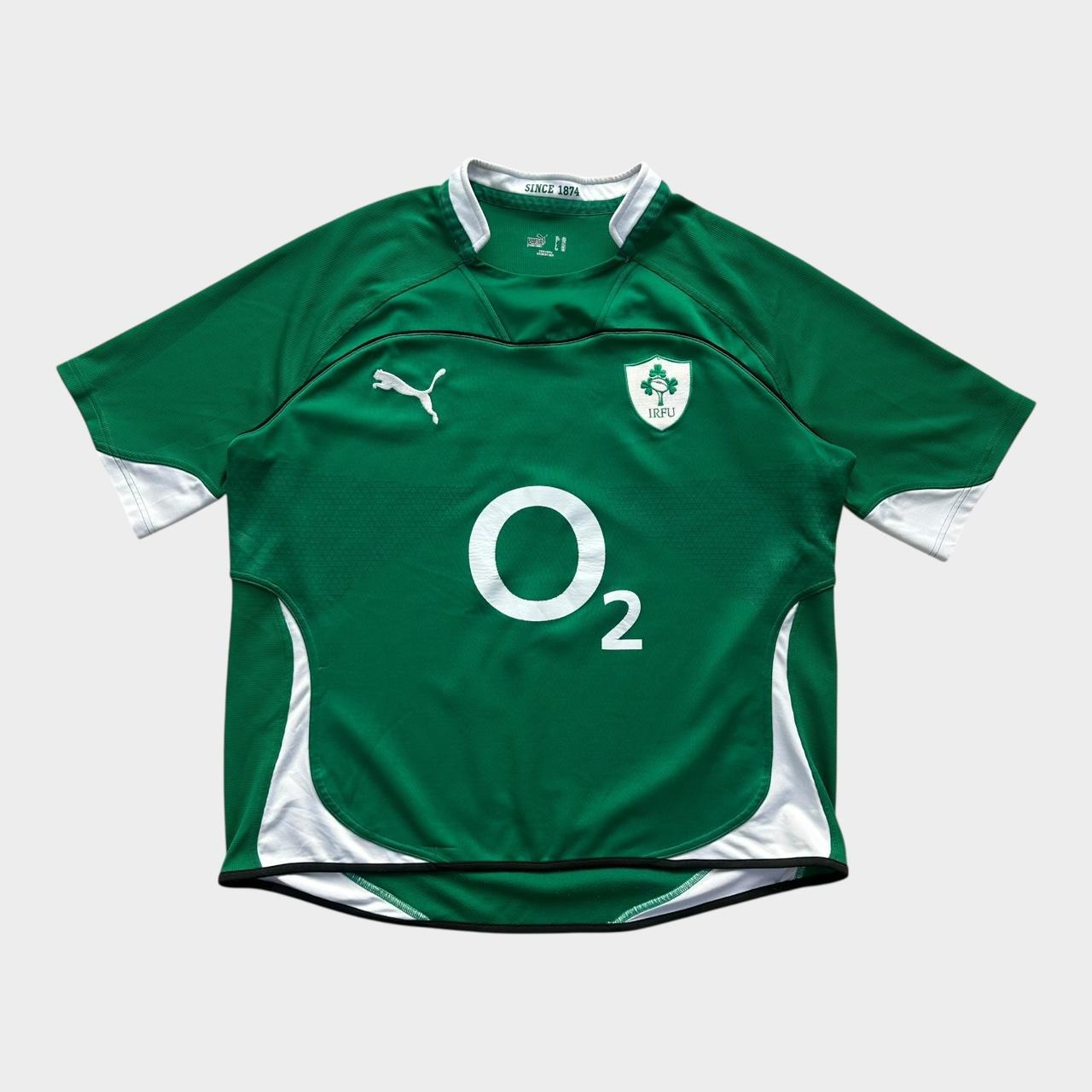 Top de rugby Ireland de la Puma cu sigle brodate și sponsorizează pieptul în verde și alb