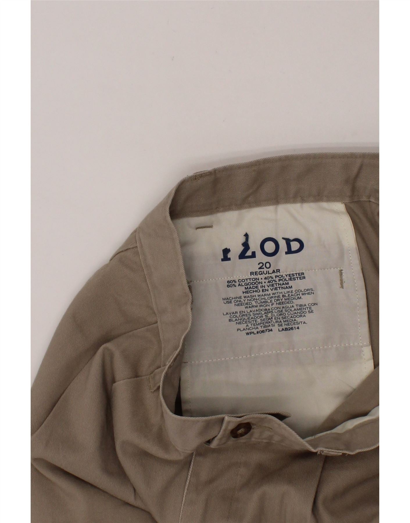 - AI Description: Izod boys' khaki shorts, size 20, crafted from a durable woven cotton blend (60% cotton, 40% polyester). These pre-owned, classic-style shorts feature a regular fit, button closure, and practical pockets. Accented with a button detail and subtle pleats. Condition: excellent, with minor staining near the right front pocket. Washing Instructions: Machine wash warm, tumble dry medium. Warm iron if desired. Made in Vietnam.