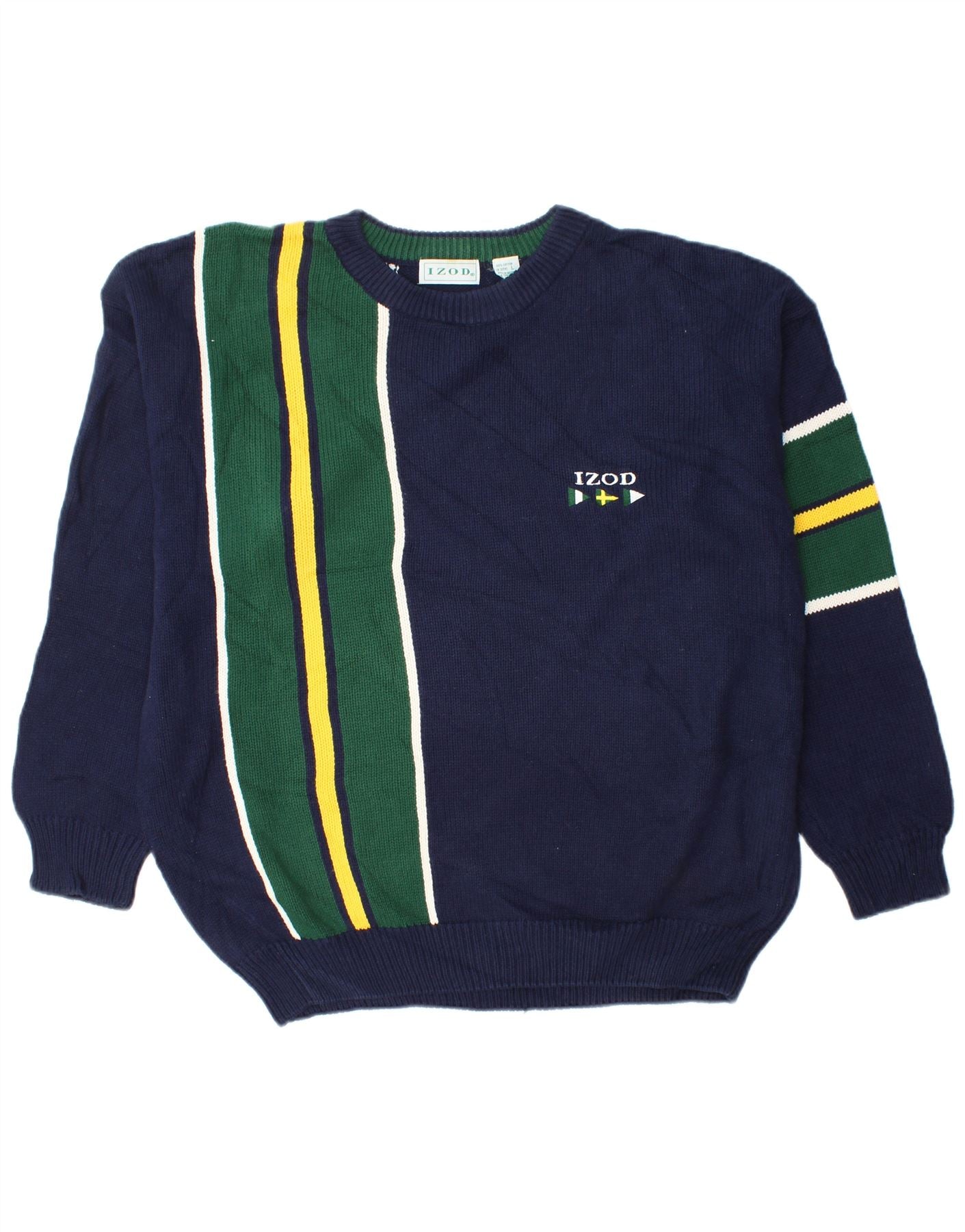 Pulover IZOD pentru bărbați, cu gât roșu, din bumbac color-bloch, mare, albastru