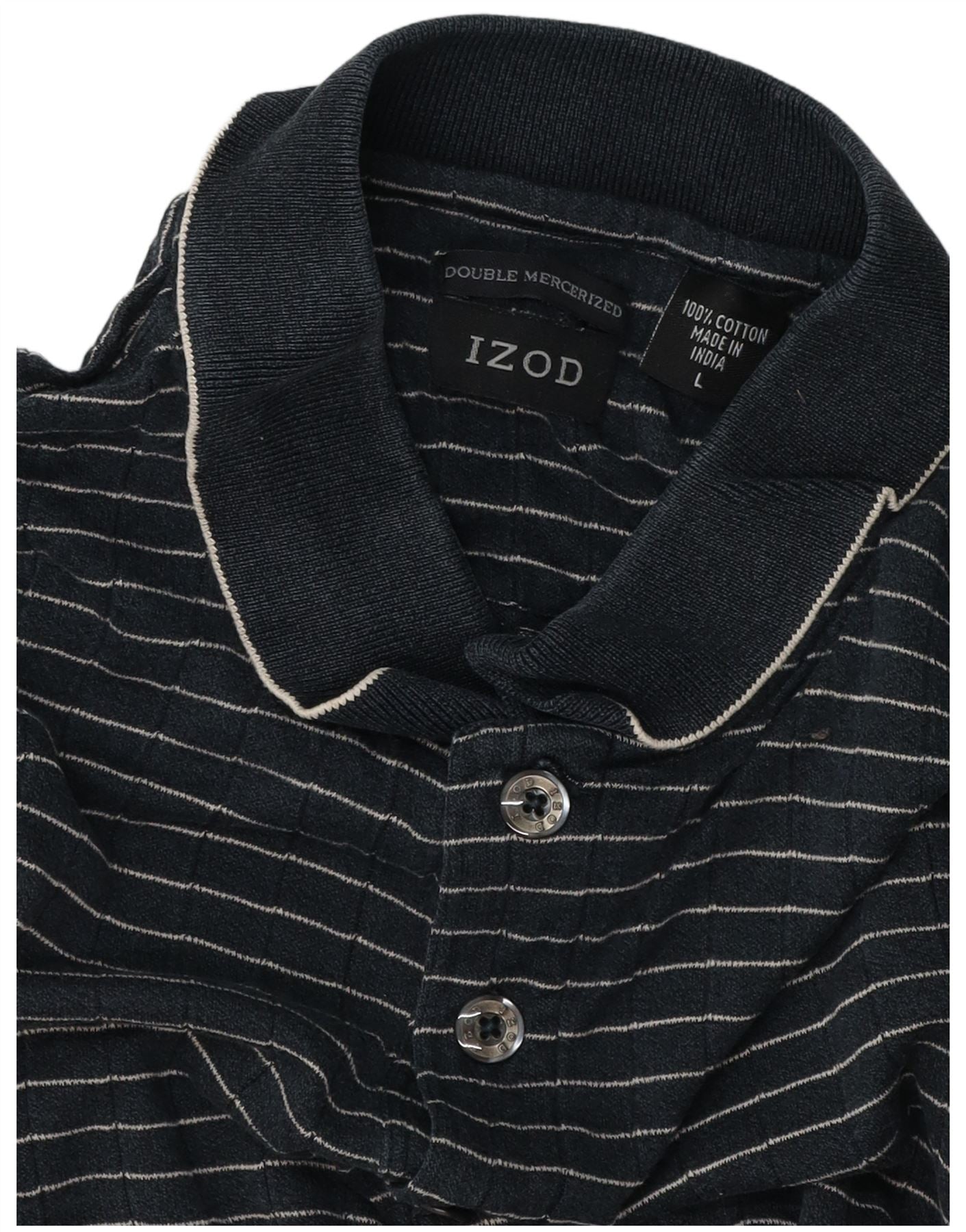 Cămașă polo IZOD pentru bărbați, mare, albastru, bumbac cu dungi
