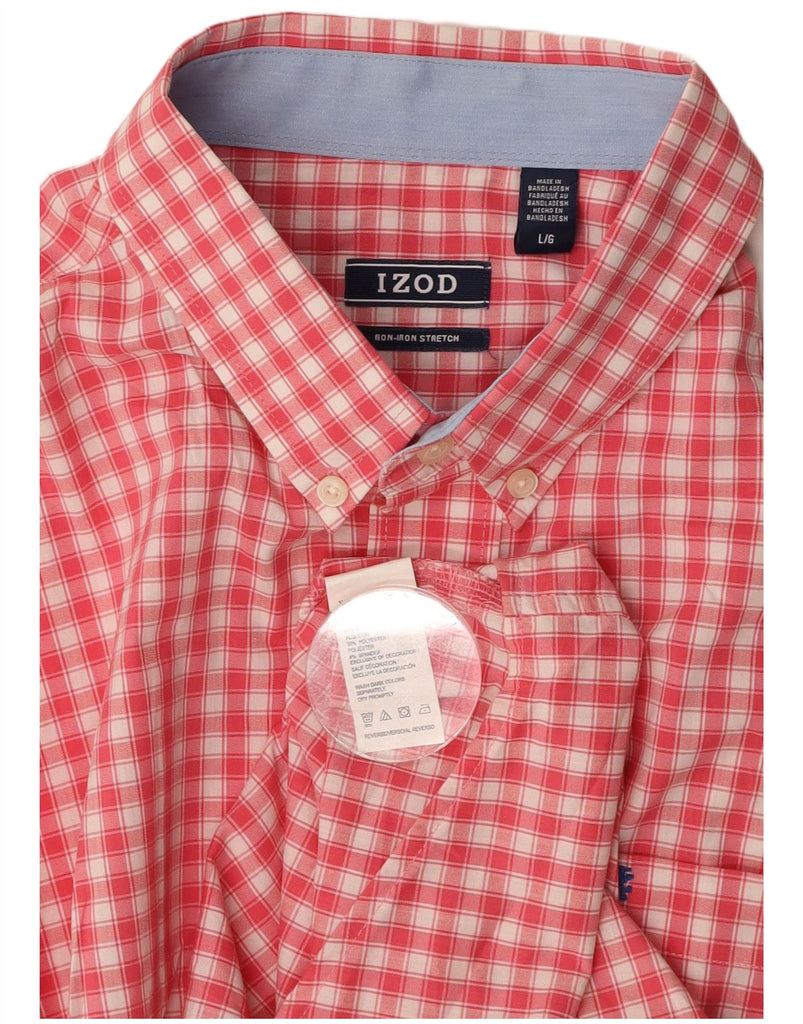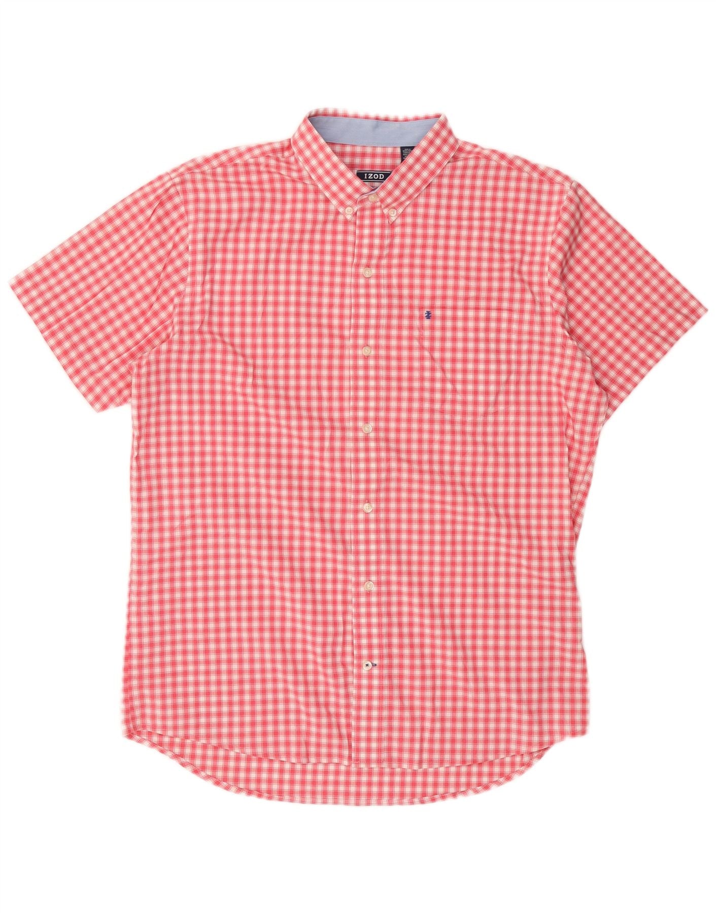 Cămașă cu mânecă scurtă pentru bărbați IZOD, bumbac cu carouri, roz mare