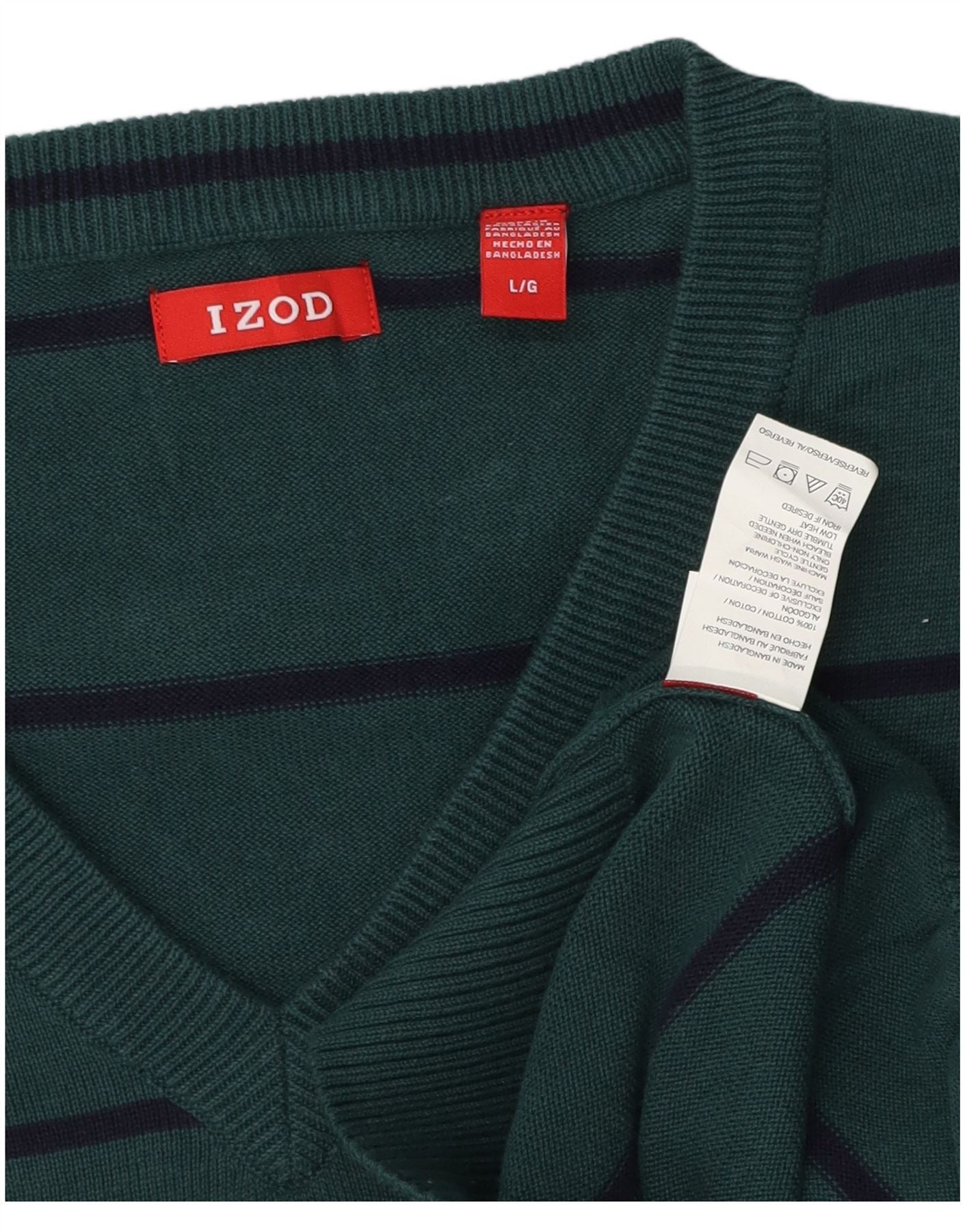 Pulover cu decolteu în V IZOD pentru bărbați, bumbac cu dungi verzi mari