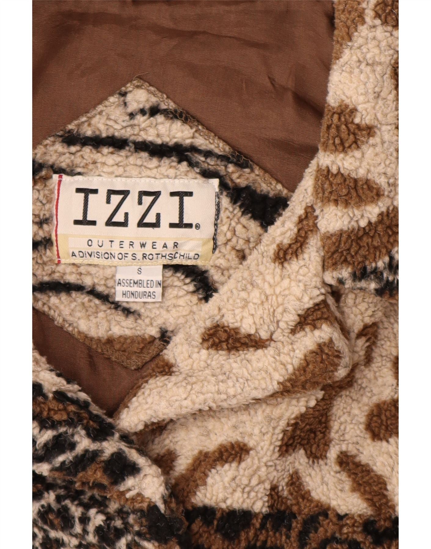 Jachetă de lână supradimensionată pentru femei IZZI UK 10 mic maro cu imprimeu animal acrilic