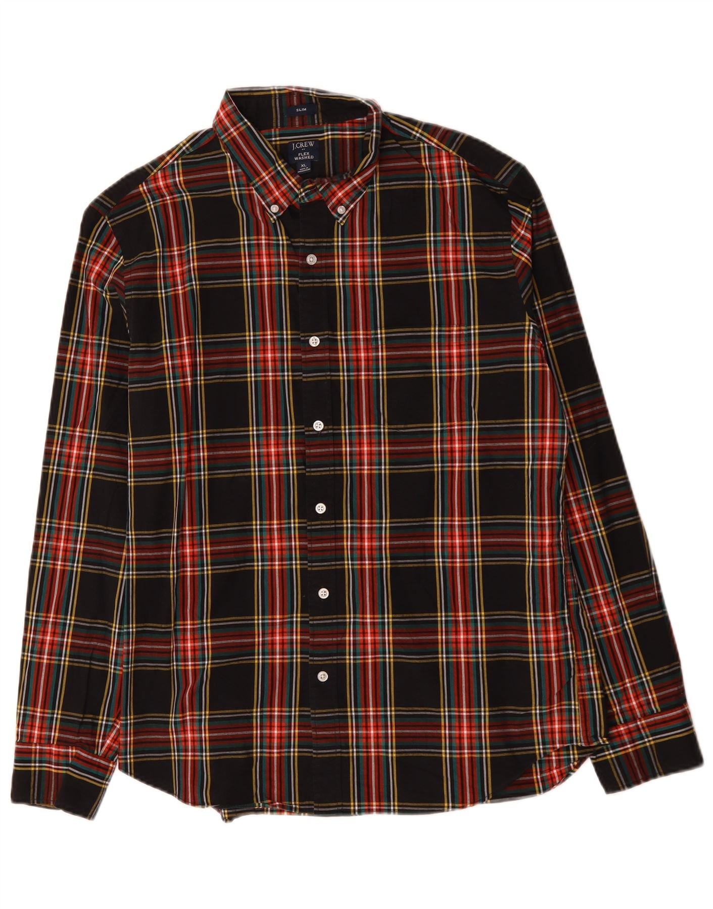 Cămașă pentru bărbați J. CREW Flex Washed Slim Fit XL, bumbac negru cu carouri