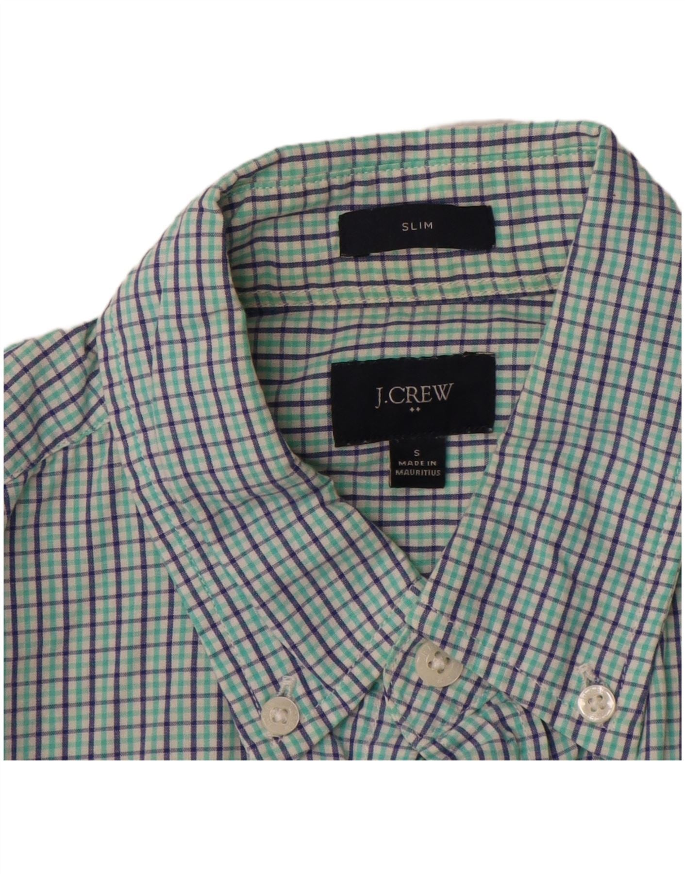 Cămașă subțire pentru bărbați J. CREW, bumbac cu carouri verzi mici