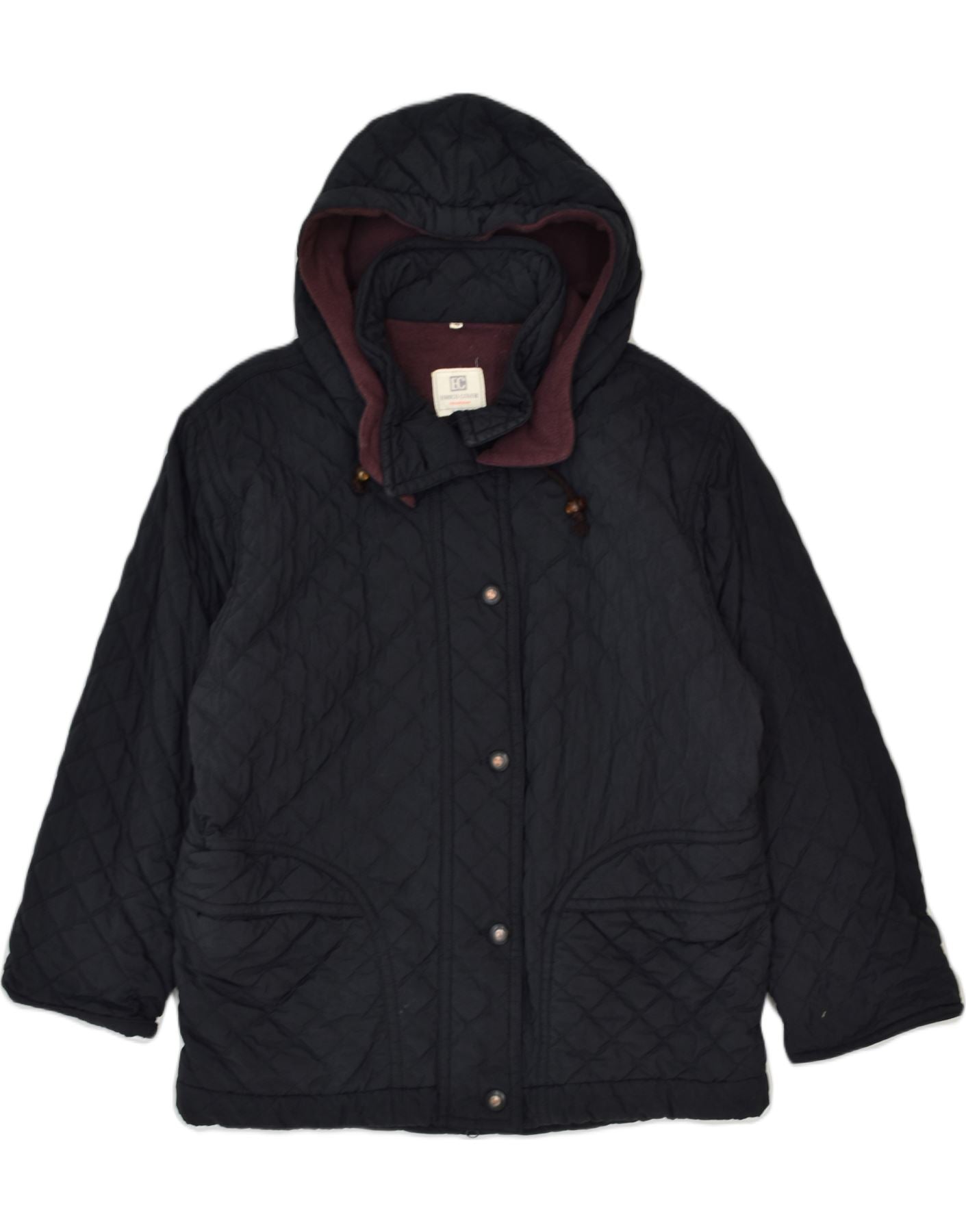 Jachetă matlasată cu glugă pentru femei VINTAGE IT 46 mare nailon bleumarin