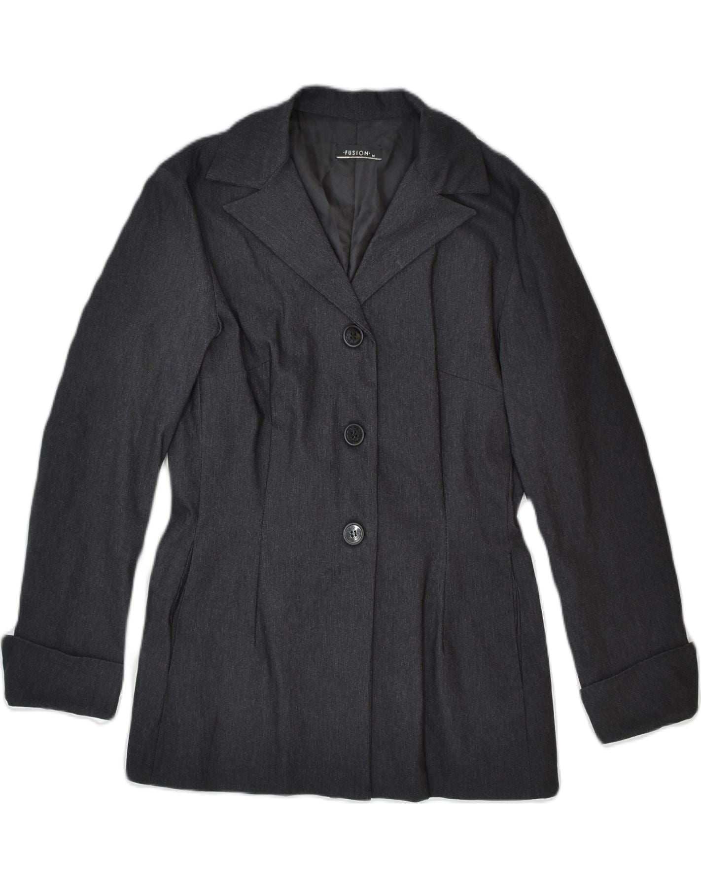 Jachetă pentru femei VINTAGE cu 3 nasturi, UK 12 Poliamidă neagră medie
