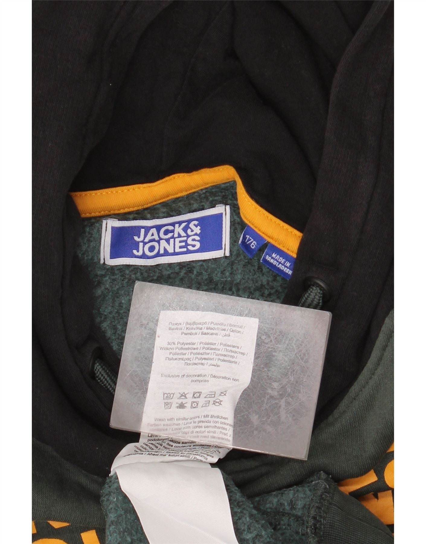 JACK & JONES Pulover cu glugă cu grafic pentru băieți 15-16 ani, color verde
