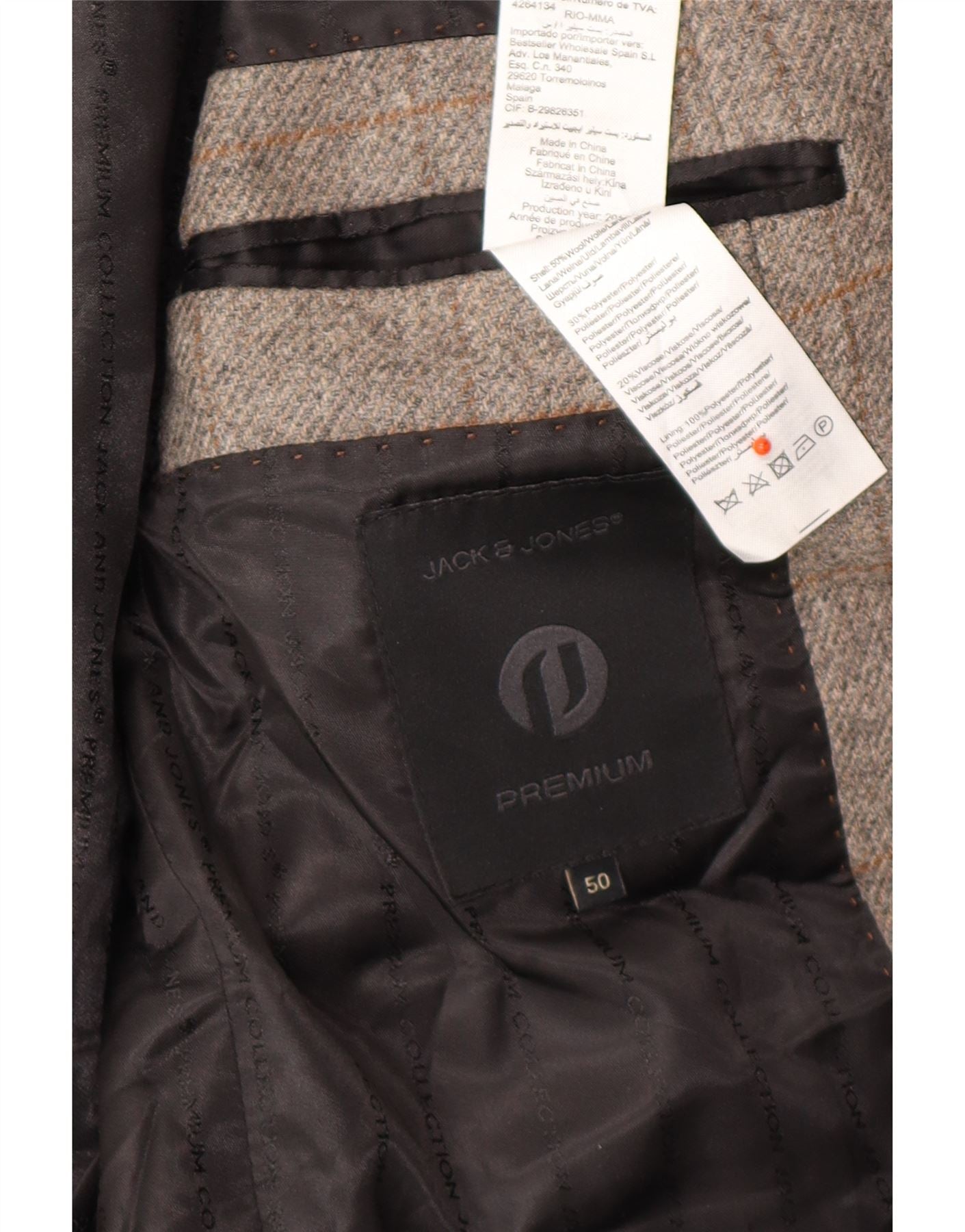 JACK & JONES Jachetă pentru bărbați cu 2 nasturi IT 50 Lână mare cu carouri gri