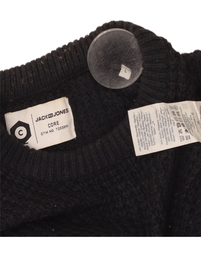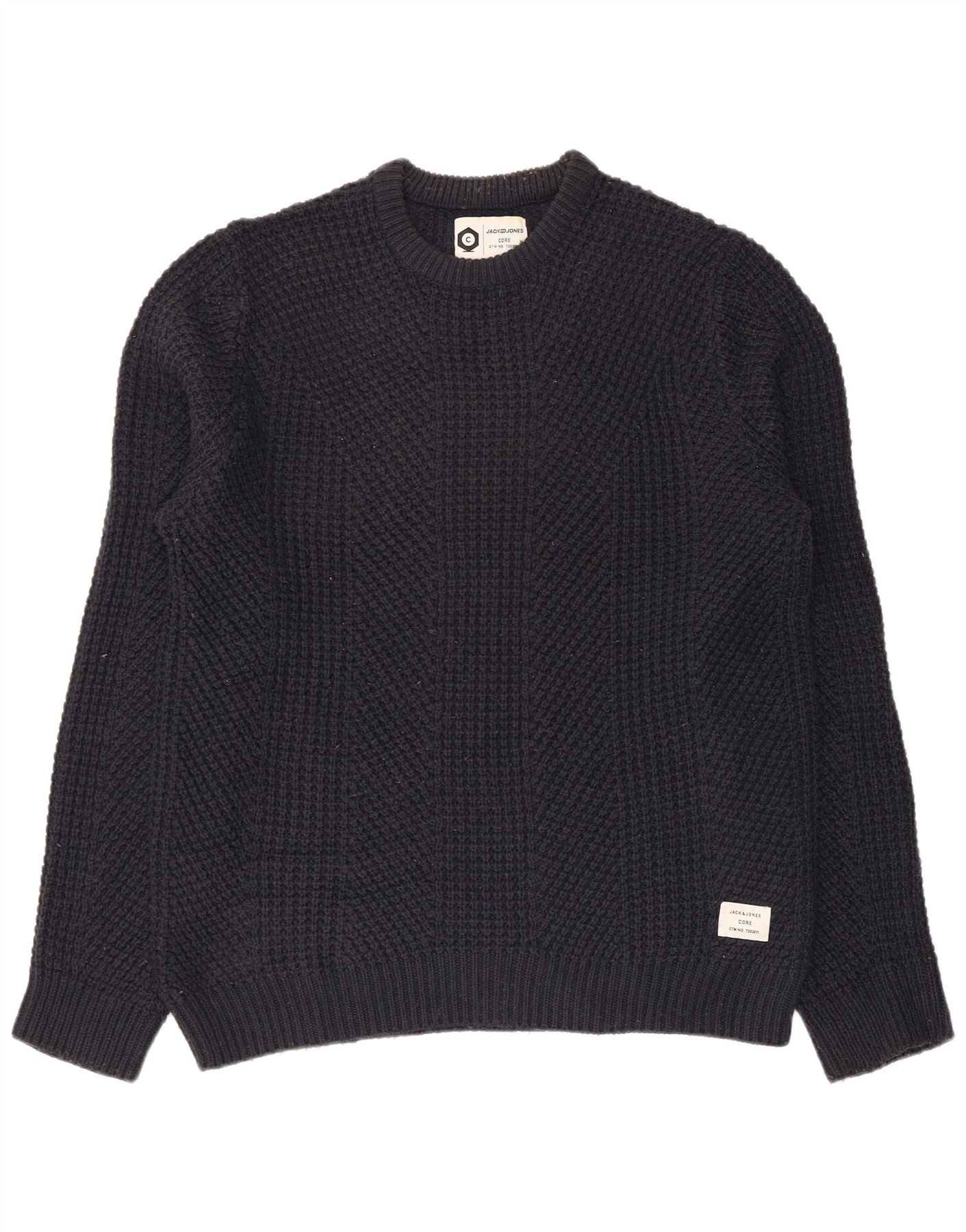 JACK & JONES Pulover pentru bărbați cu gât roșu din bumbac mare, albastru bleumarin