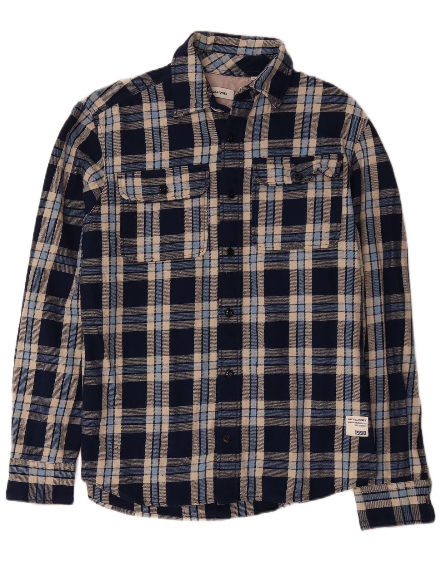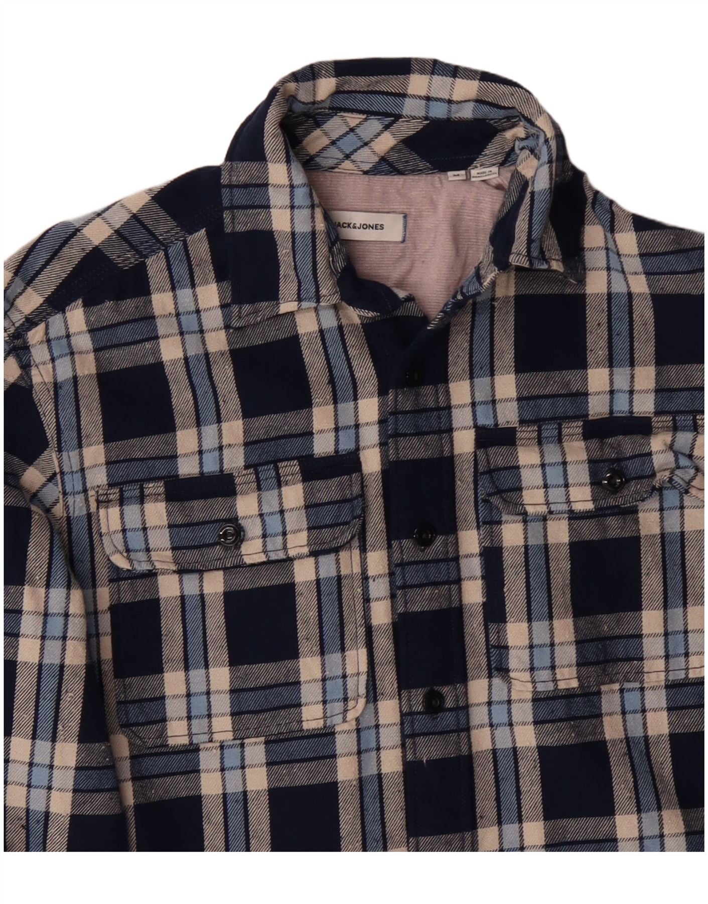 Cămașă de flanel pentru bărbați JACK & JONES, bumbac cu carouri bleumarin mediu