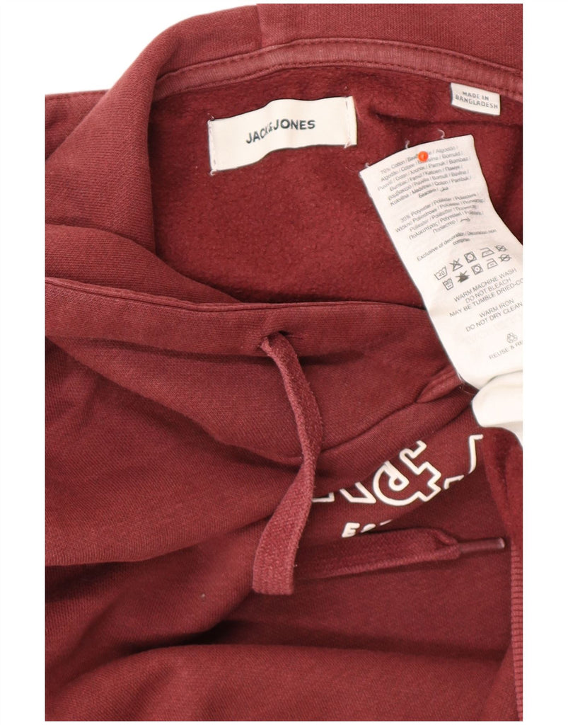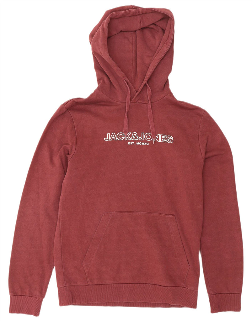 JACK & JONES Mens Graphic Hoodie Jumper Small Maroon Cotton