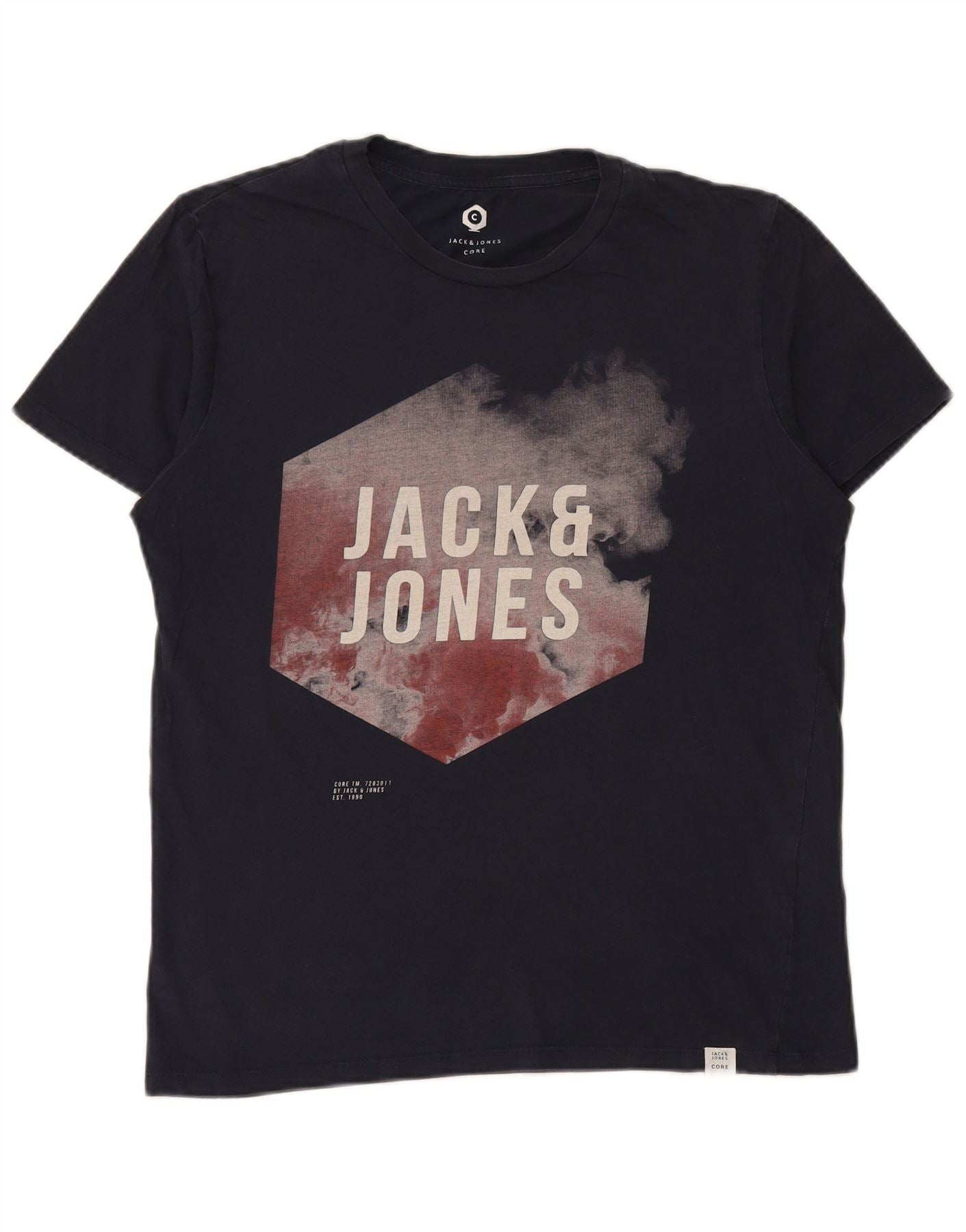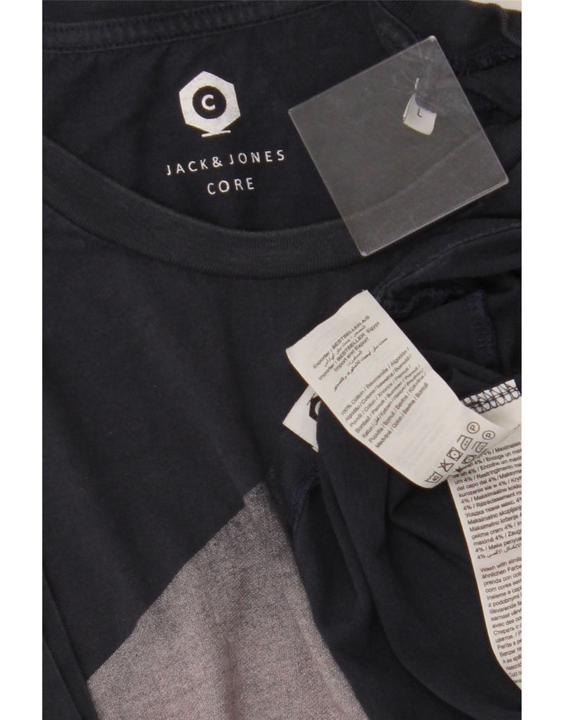 JACK & JONES Mens Graphic T-Shirt Top Large Navy Blue Cotton