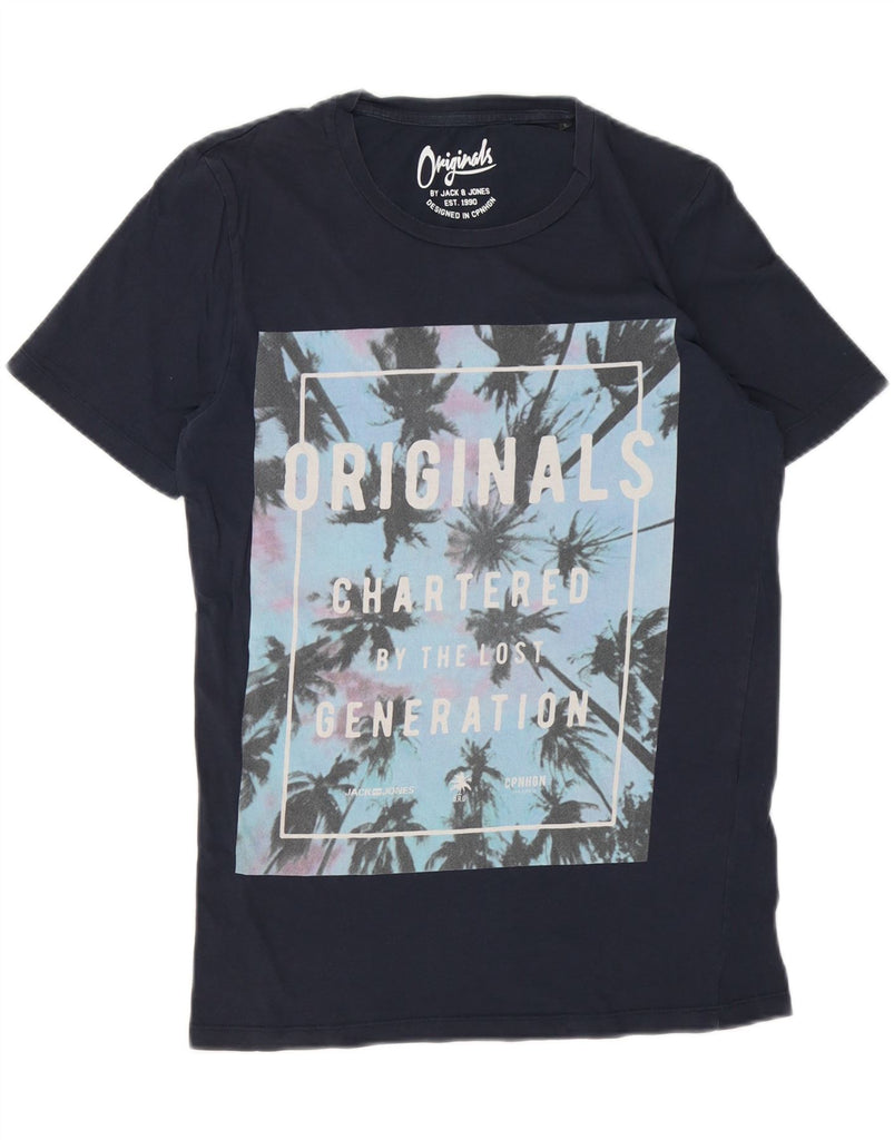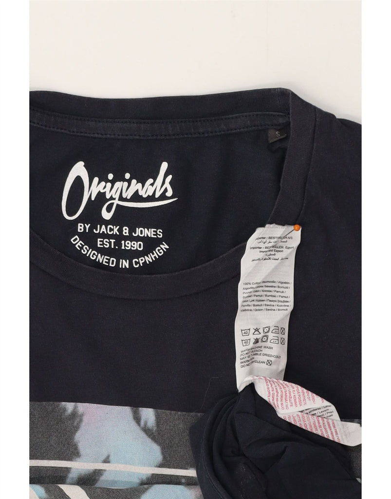 JACK & JONES Mens Graphic T-Shirt Top Small Navy Blue Cotton
