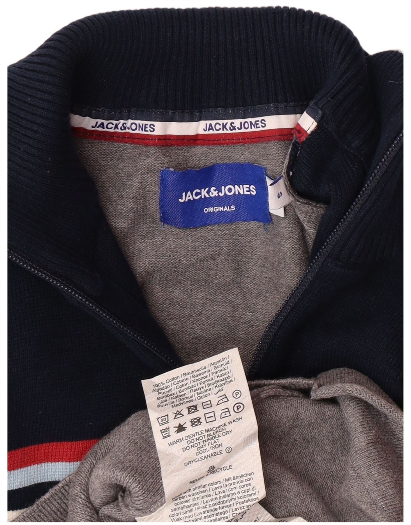 JACK & JONES Pulover pentru bărbați, cu grafică, cu fermoar, cu gât, colorat mic, gri