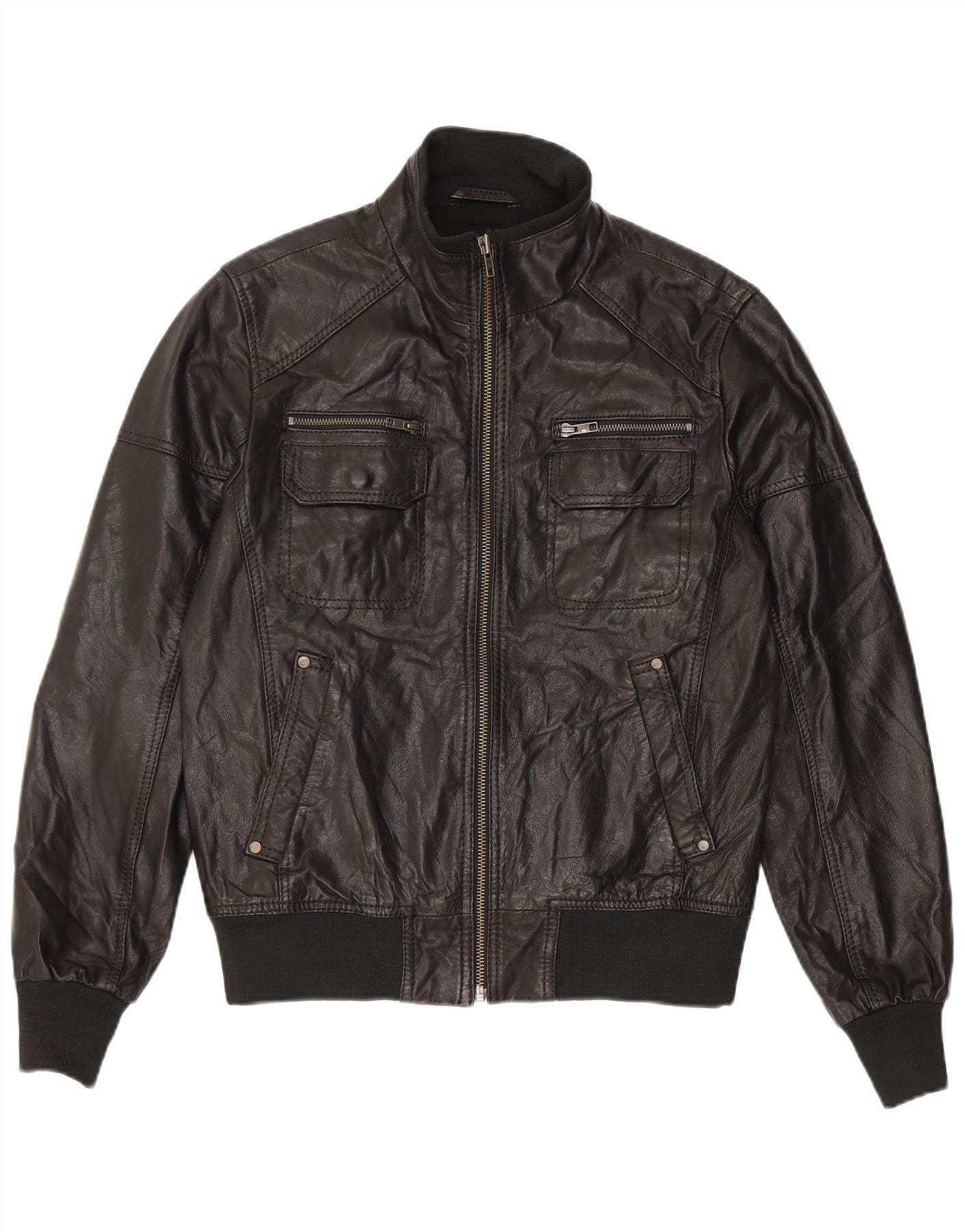 Jack & Jones Bomber din piele pentru bărbați UK 36 Mic din piele neagră