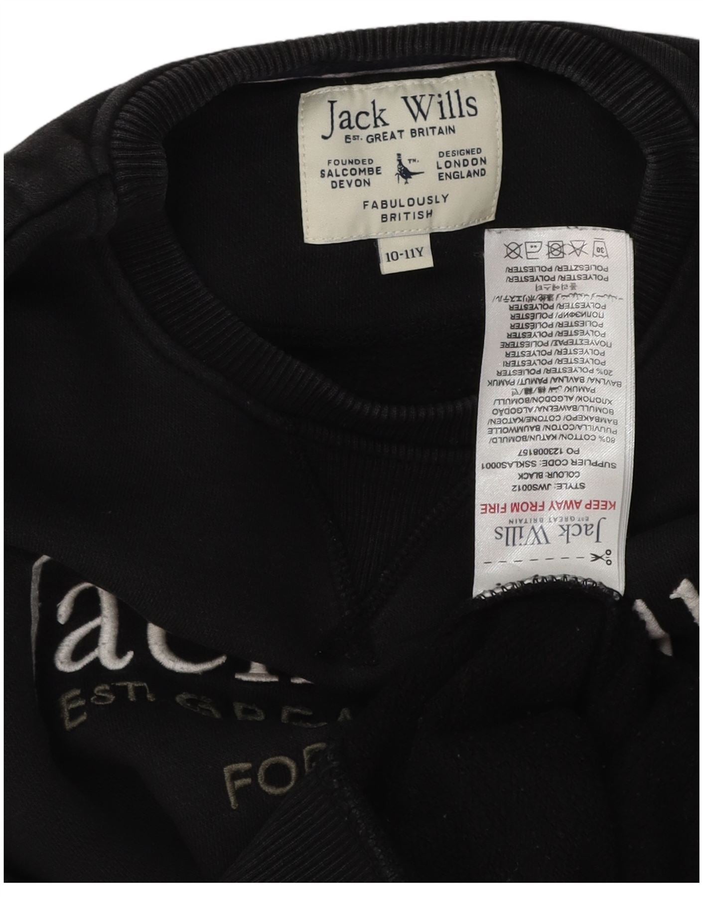 JACK WILLS Boys Graphic Sweatshirt Jumper 10-11 Years Black Cotton