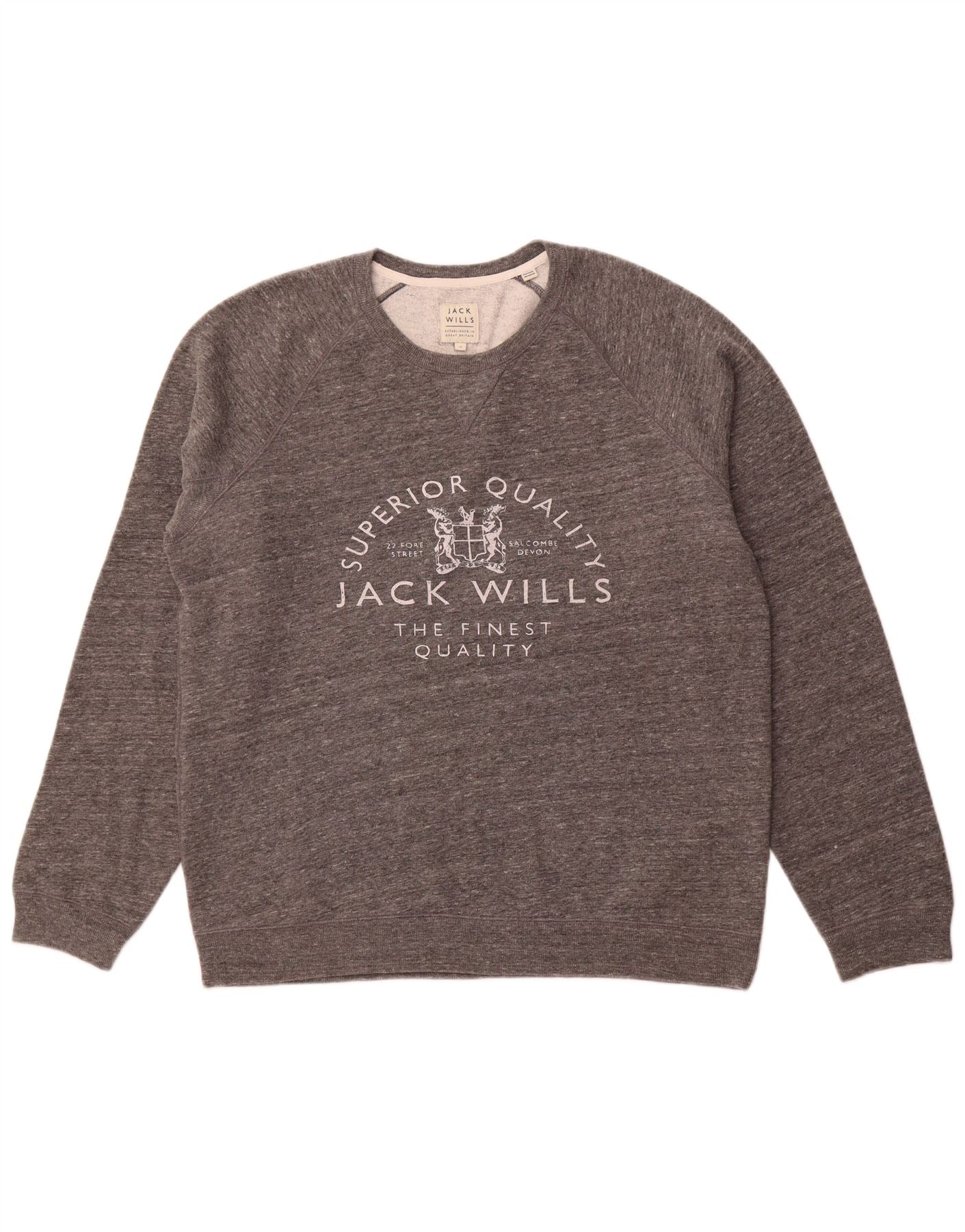 JACK WILLS Pulover pentru bărbați cu decolteu rotund, XL, bumbac cu pete gri