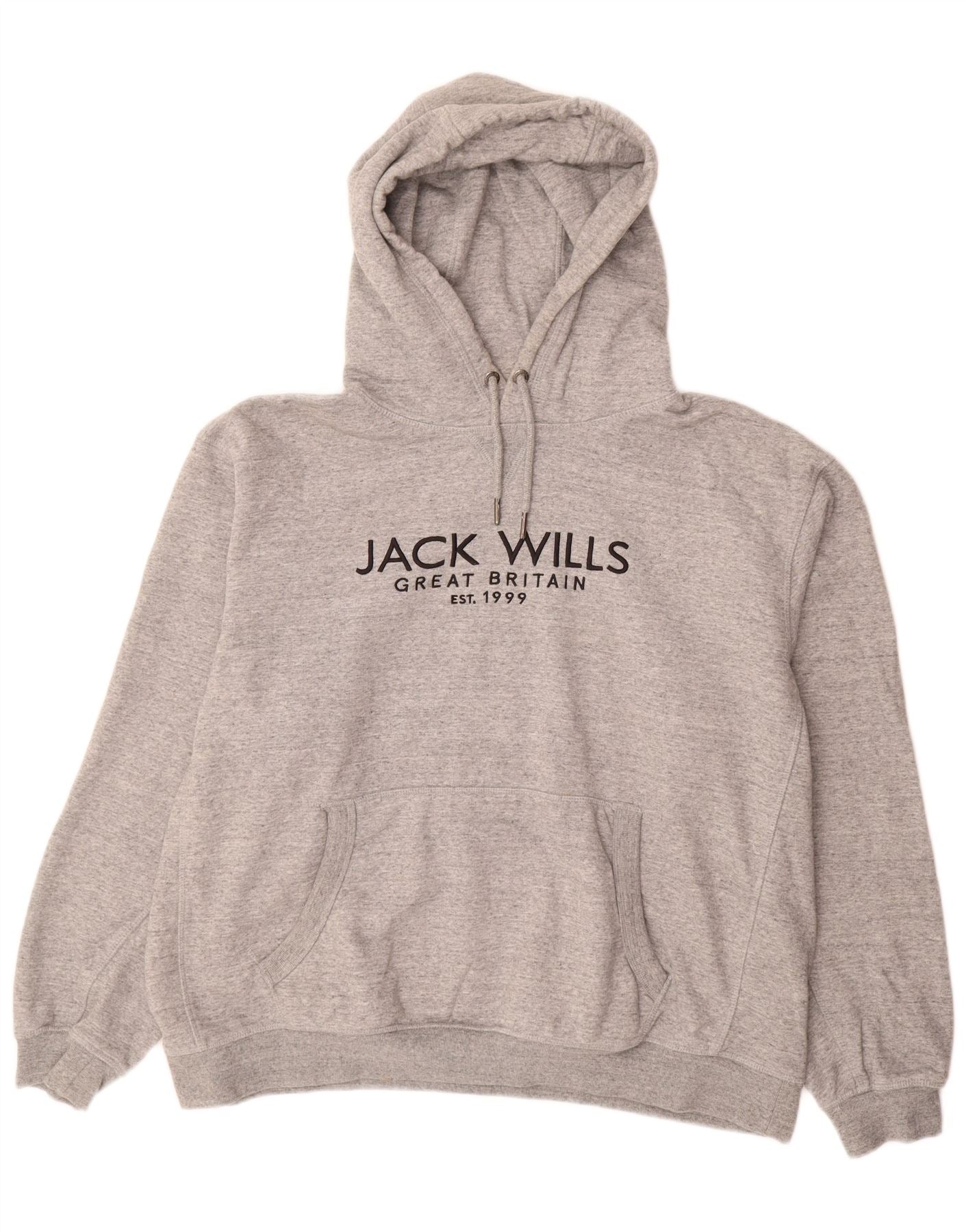 JACK WILLS Pulover cu glugă cu grafică pentru bărbați, 3XL, bumbac cu pete gri