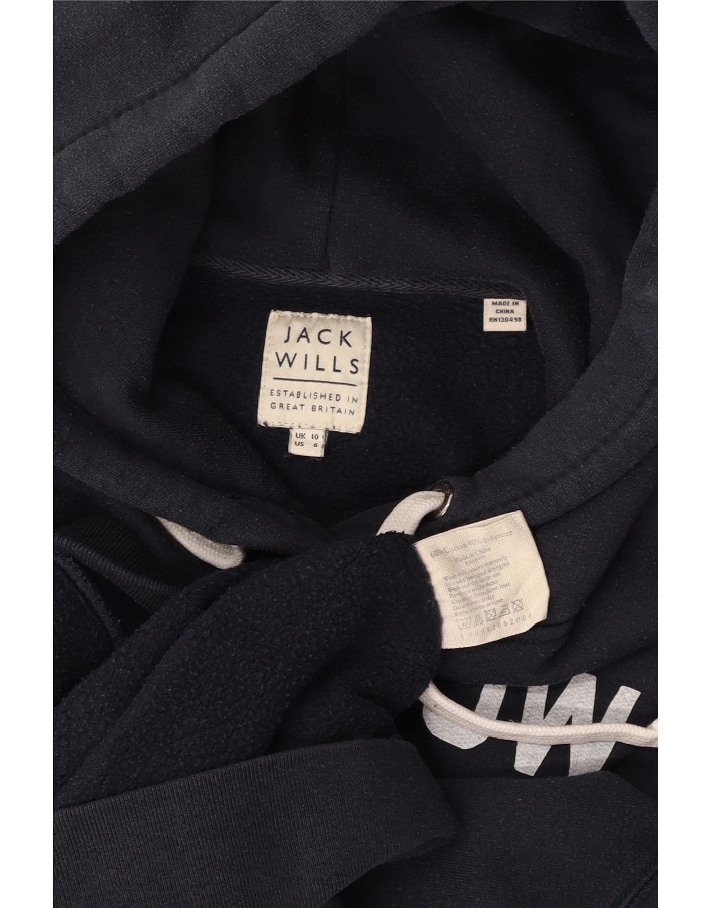 JACK WILLS Mens Graphic Hoodie Jumper UK 10 Small Navy Blue Cotton
