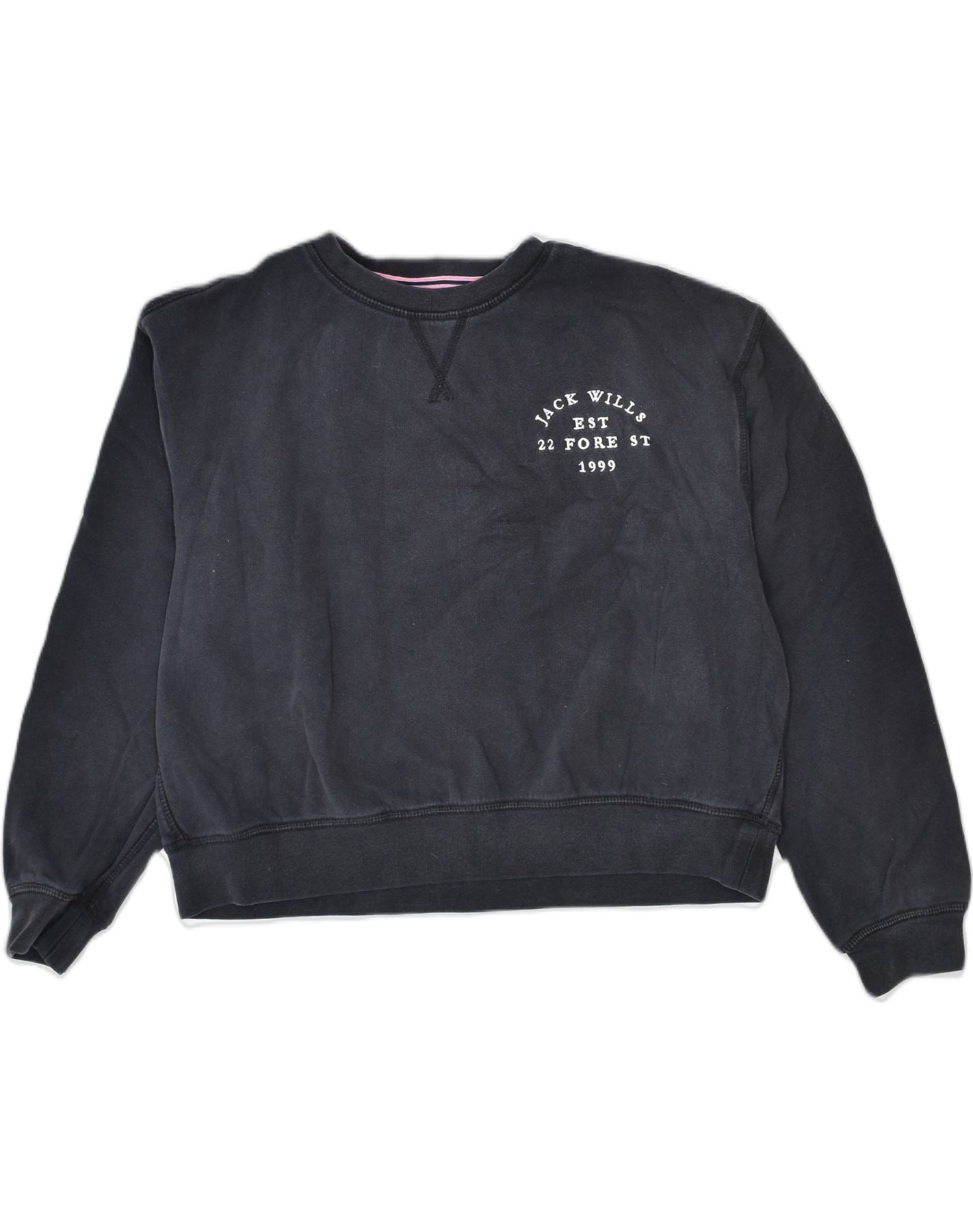 JACK WILLS Pulover cu grafic pentru femei UK 10 Bumbac negru mic