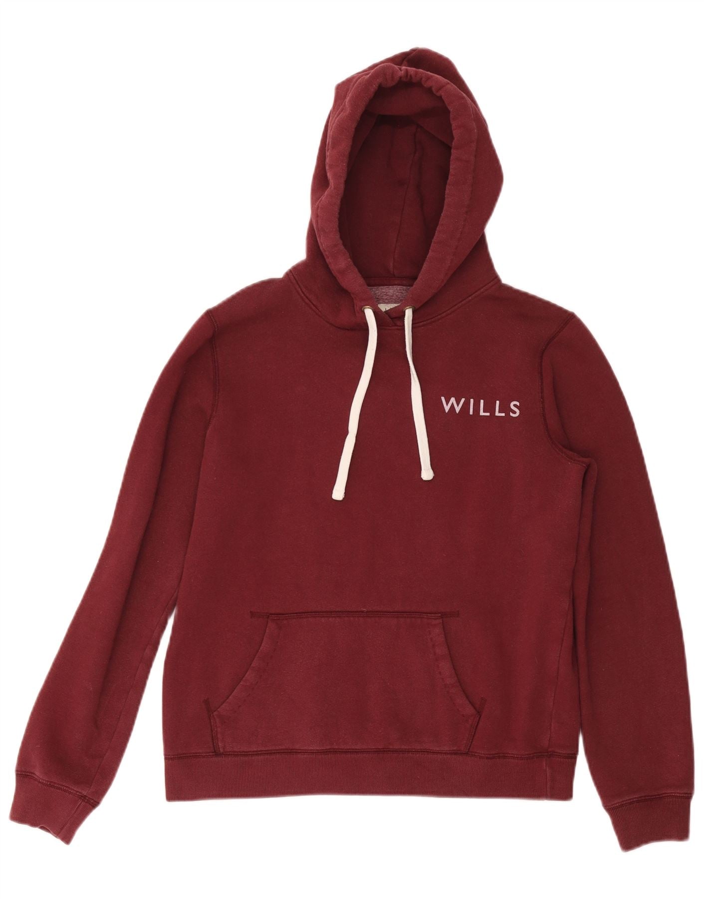 JACK WILLS Pulover cu glugă cu grafică pentru femei UK 12 Bumbac Burgundy mediu