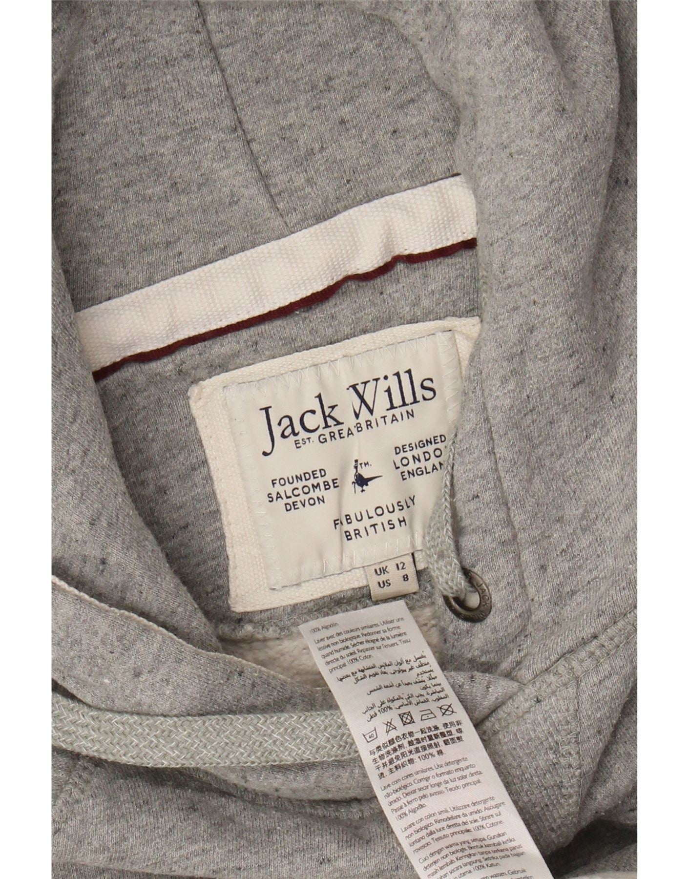 JACK WILLS Pulover cu glugă cu grafic pentru femei UK 12 Medium Gri Colorblock