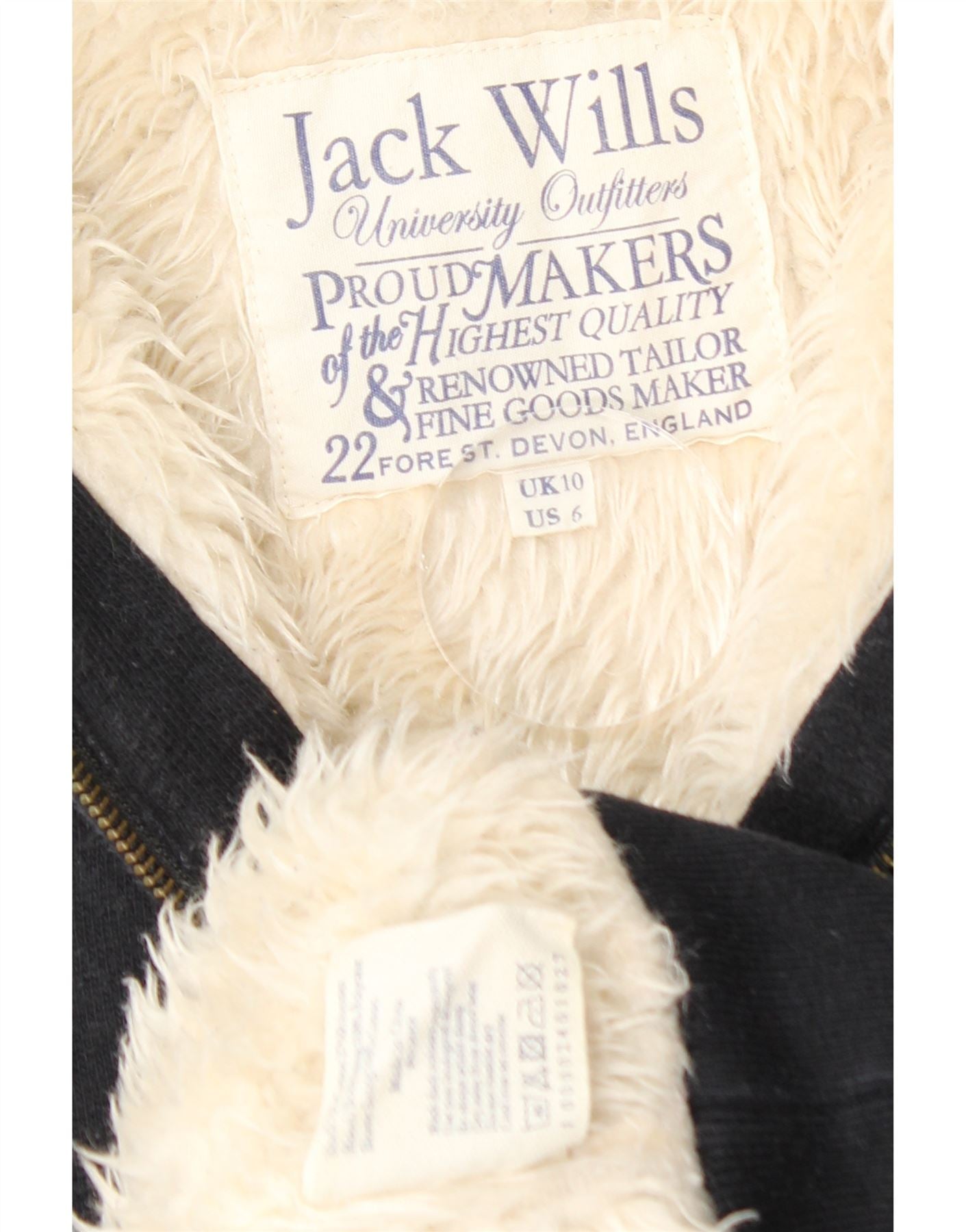 JACK WILLS Pulover cu glugă cu fermoar și grafic Sherpa pentru femei UK 10 Small Black