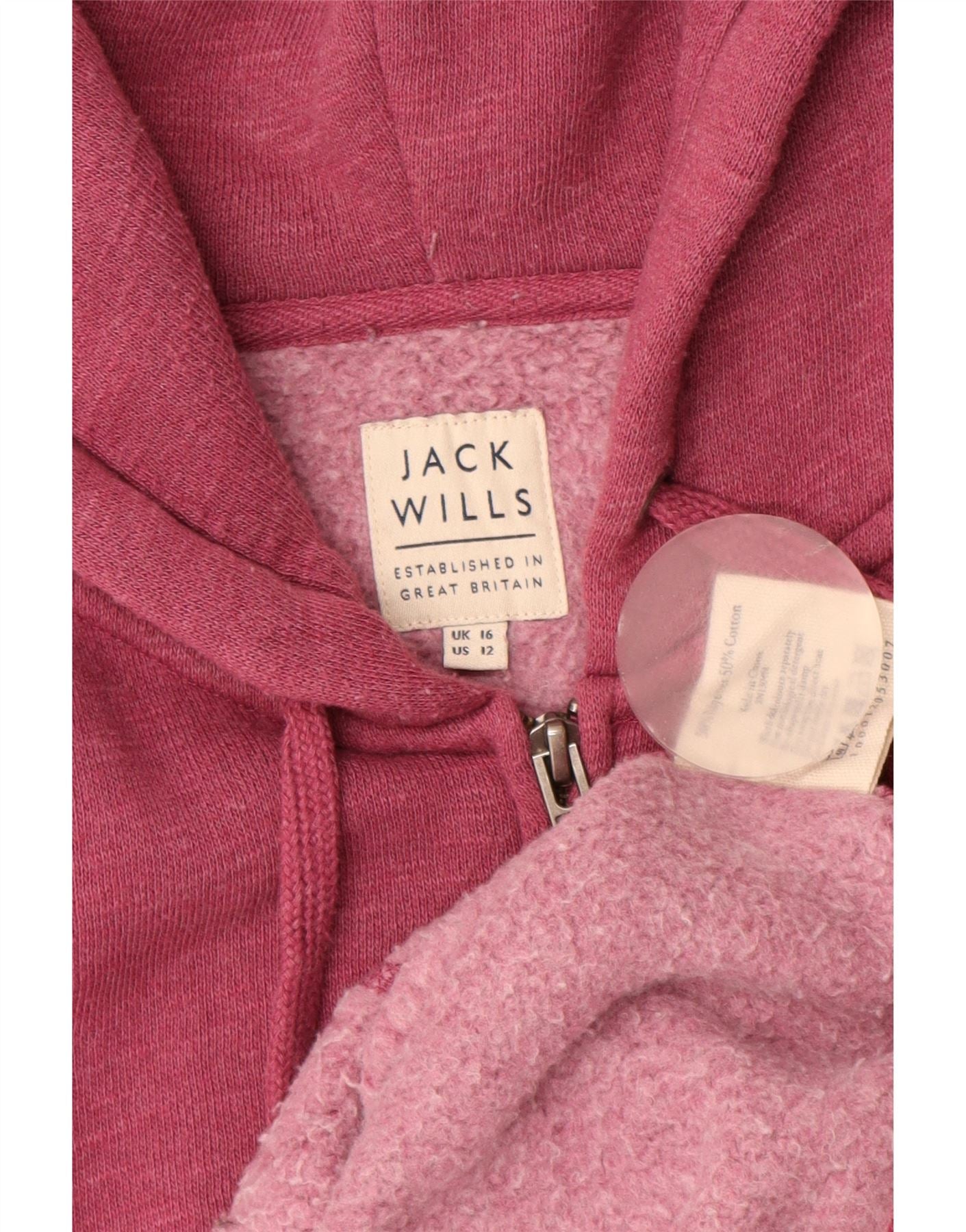 JACK WILLS Pulover cu capota cu fermoar pentru femei UK 16 mare Burgundy Flecked