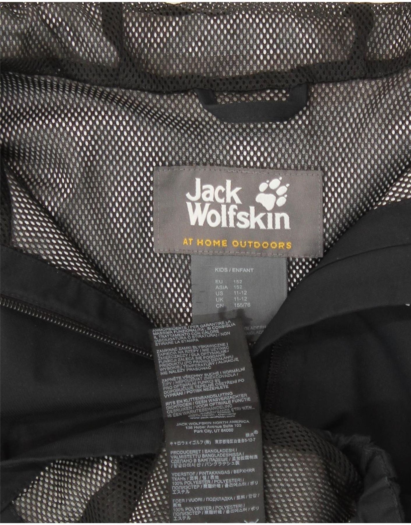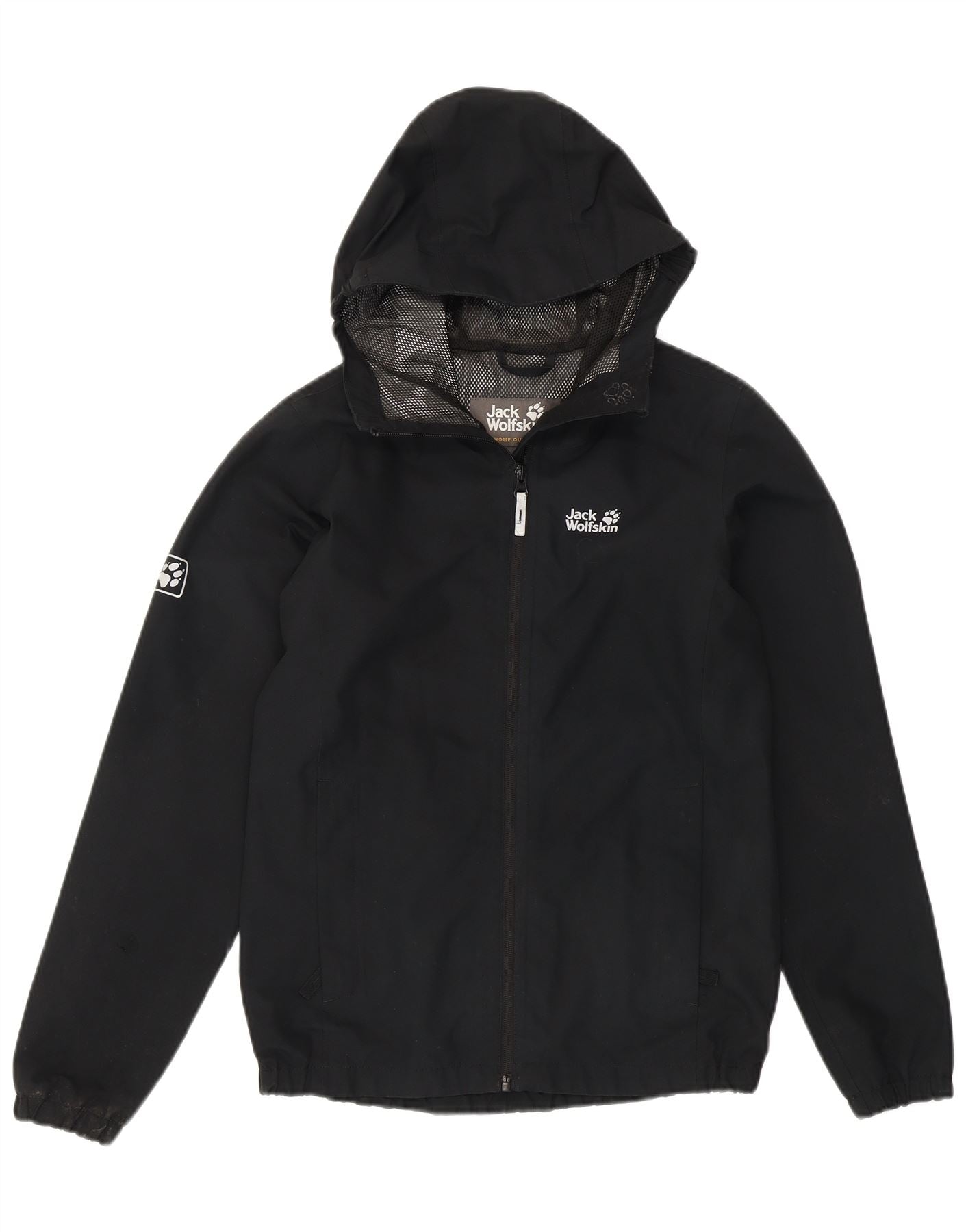 Jack Wolfskin Jachetă de ploaie cu glugă grafică pentru băieți 11-12 ani, poliester negru