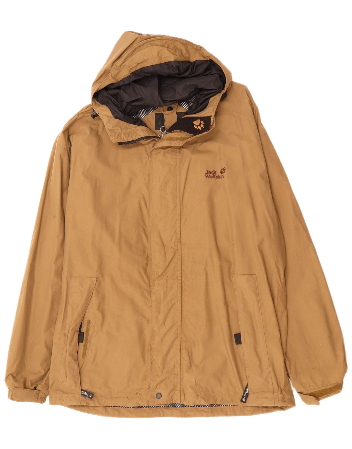 Jack Wolfskin Jachetă de ploaie cu glugă pentru bărbați UK 40/42, mare, bej, poliamidă