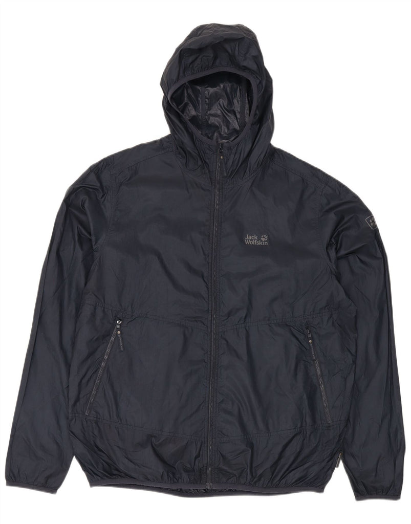 JACK WOLFSKIN Mens Hooded Rain Jacket UK 44/46 XL Navy Blue Polyester