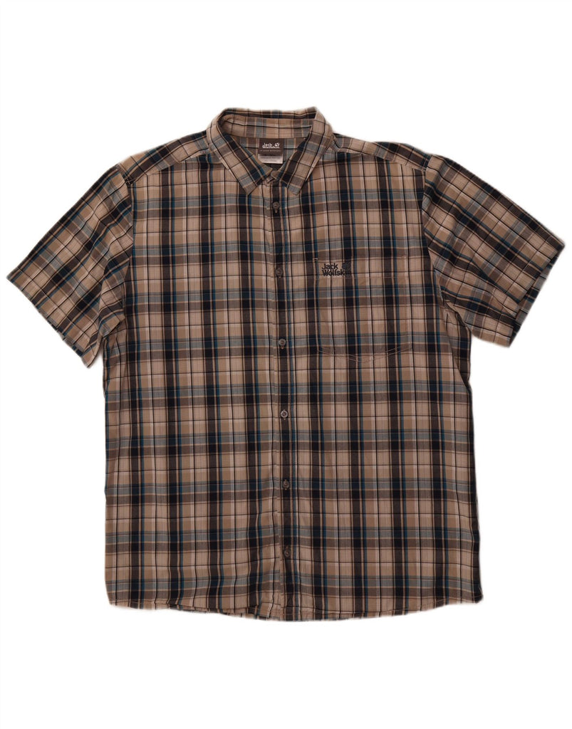 Cămașă cu mânecă scurtă pentru bărbați JACK WOLFSKIN Mărimea 44/46 XL bumbac cu carouri gri
