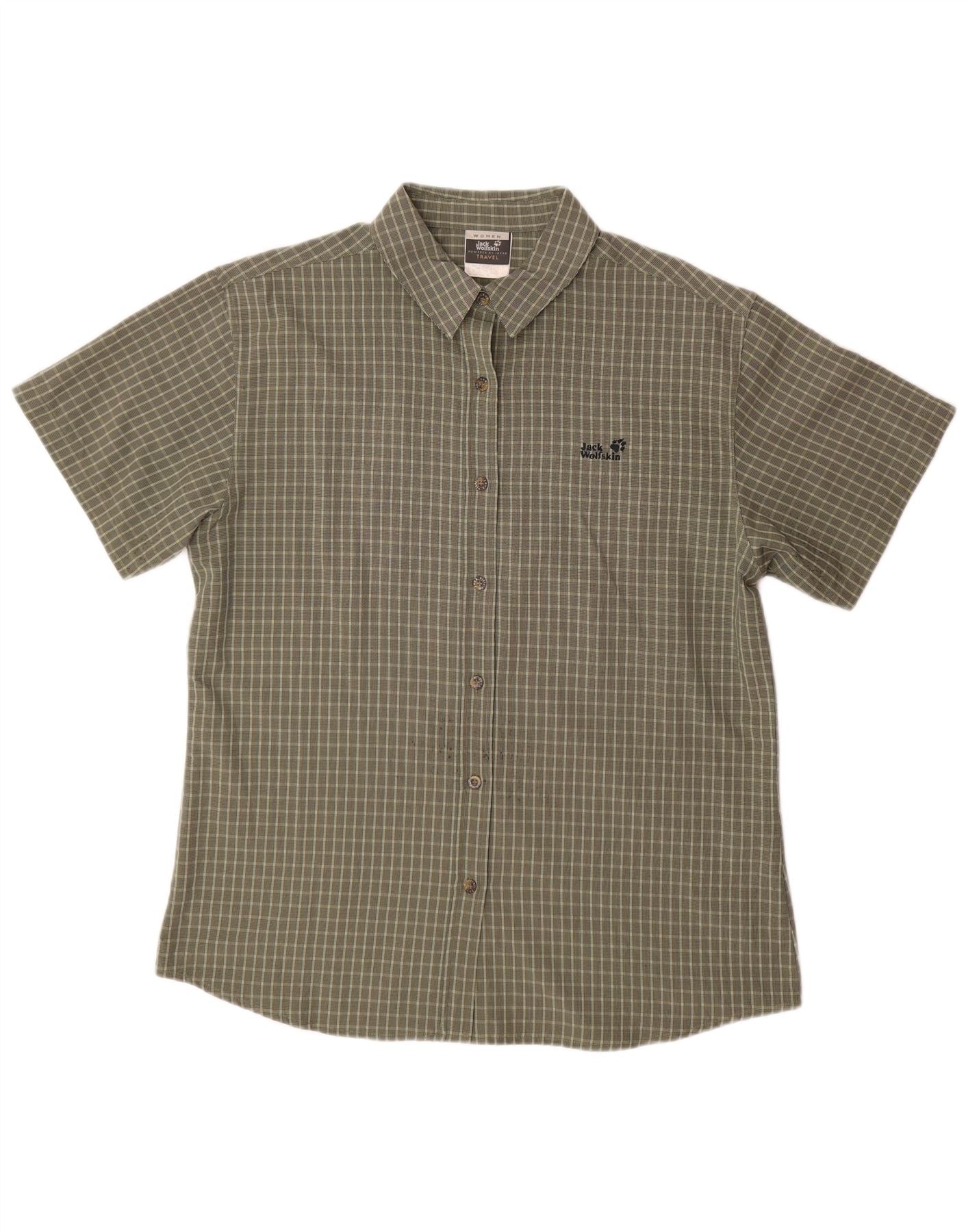 Cămașă cu mânecă scurtă pentru femei JACK WOLFSKIN UK 18 XL Kaki Check Poliester