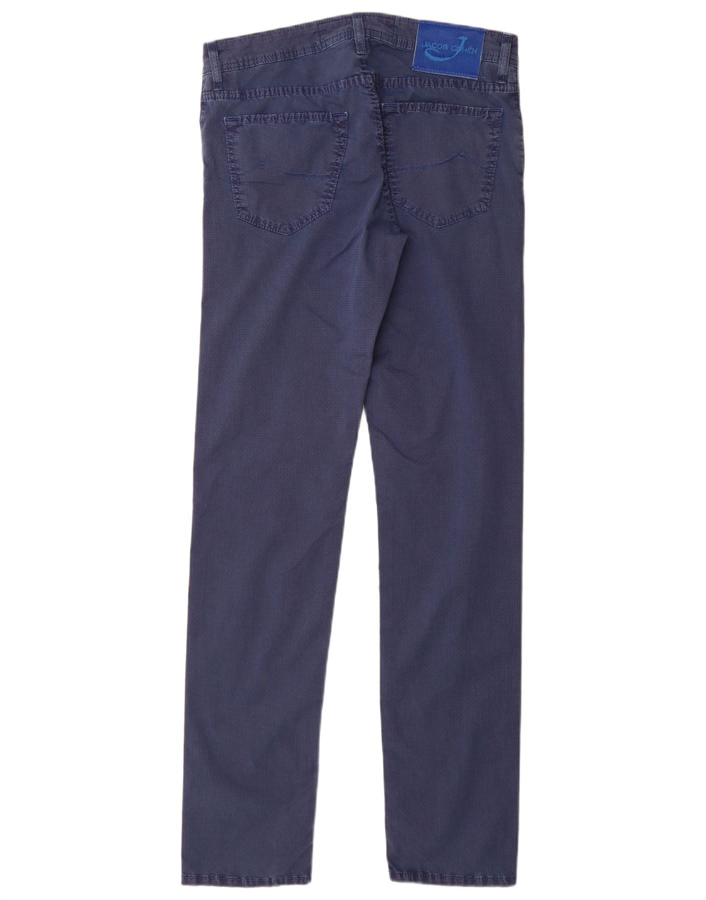 JACOB COHEN Mens Slim Casual Trousers W32 L34 Navy Blue Spotted Cotton