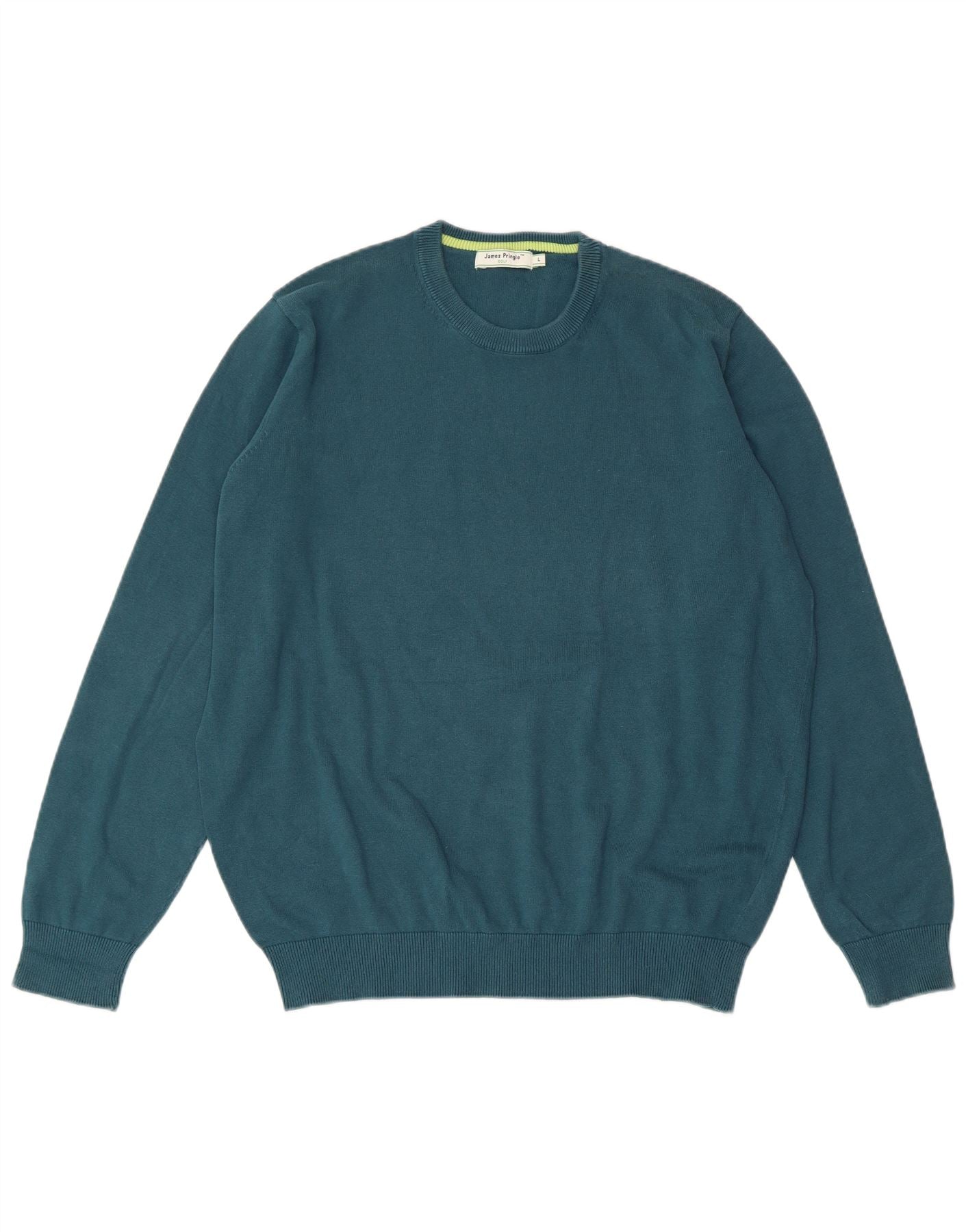 James Pringle Pulover pentru bărbați cu gât roșu, mare, albastru, bumbac