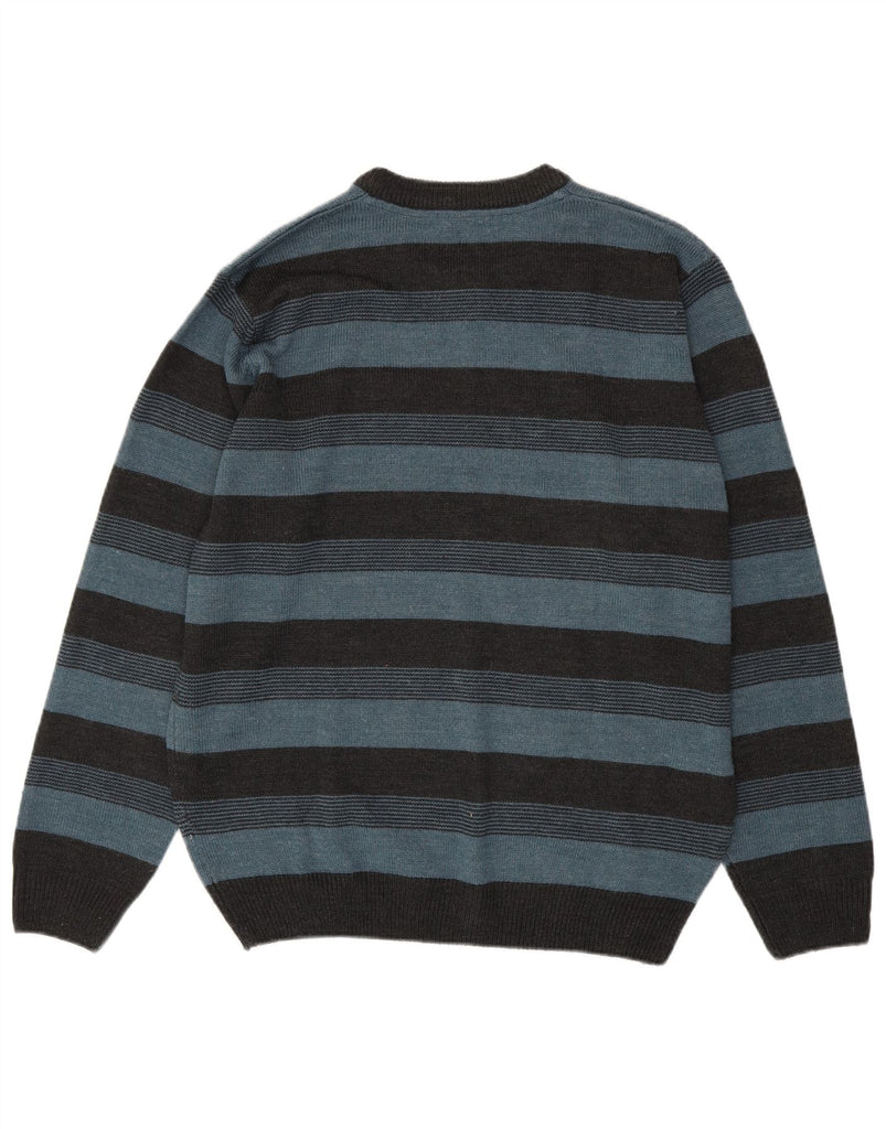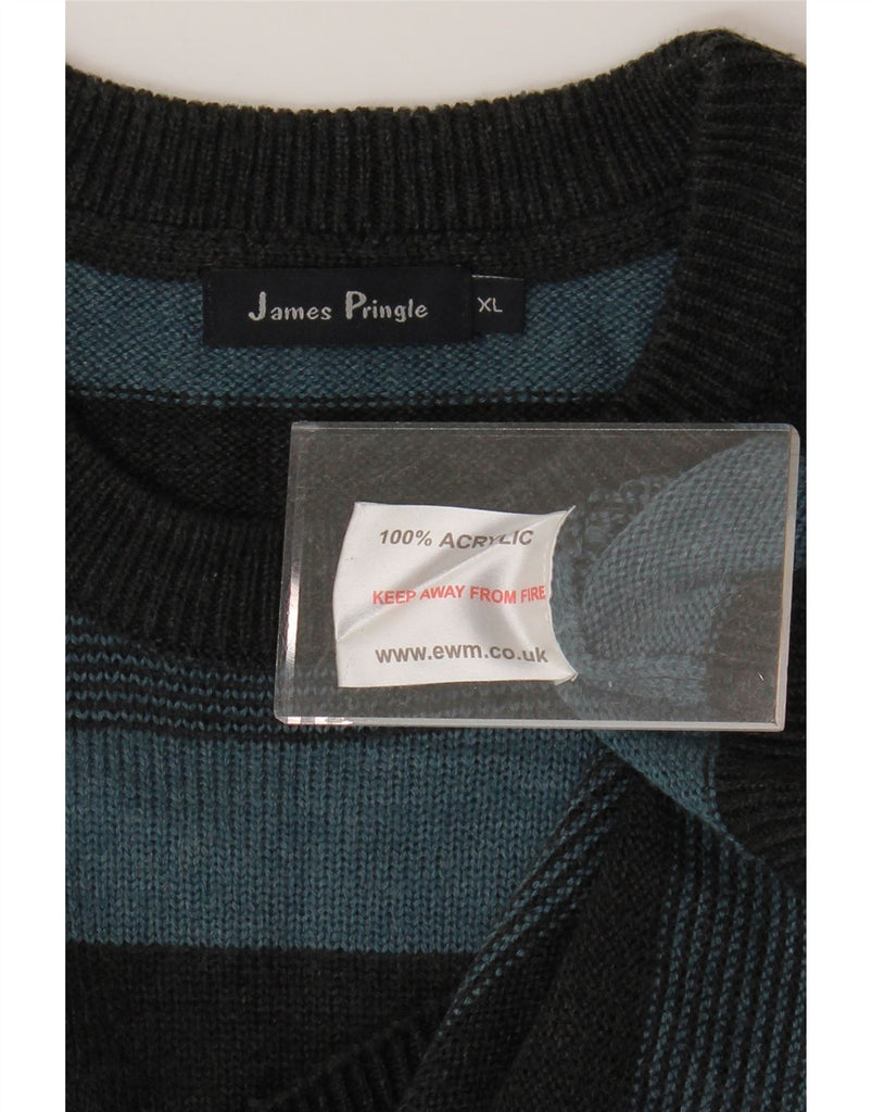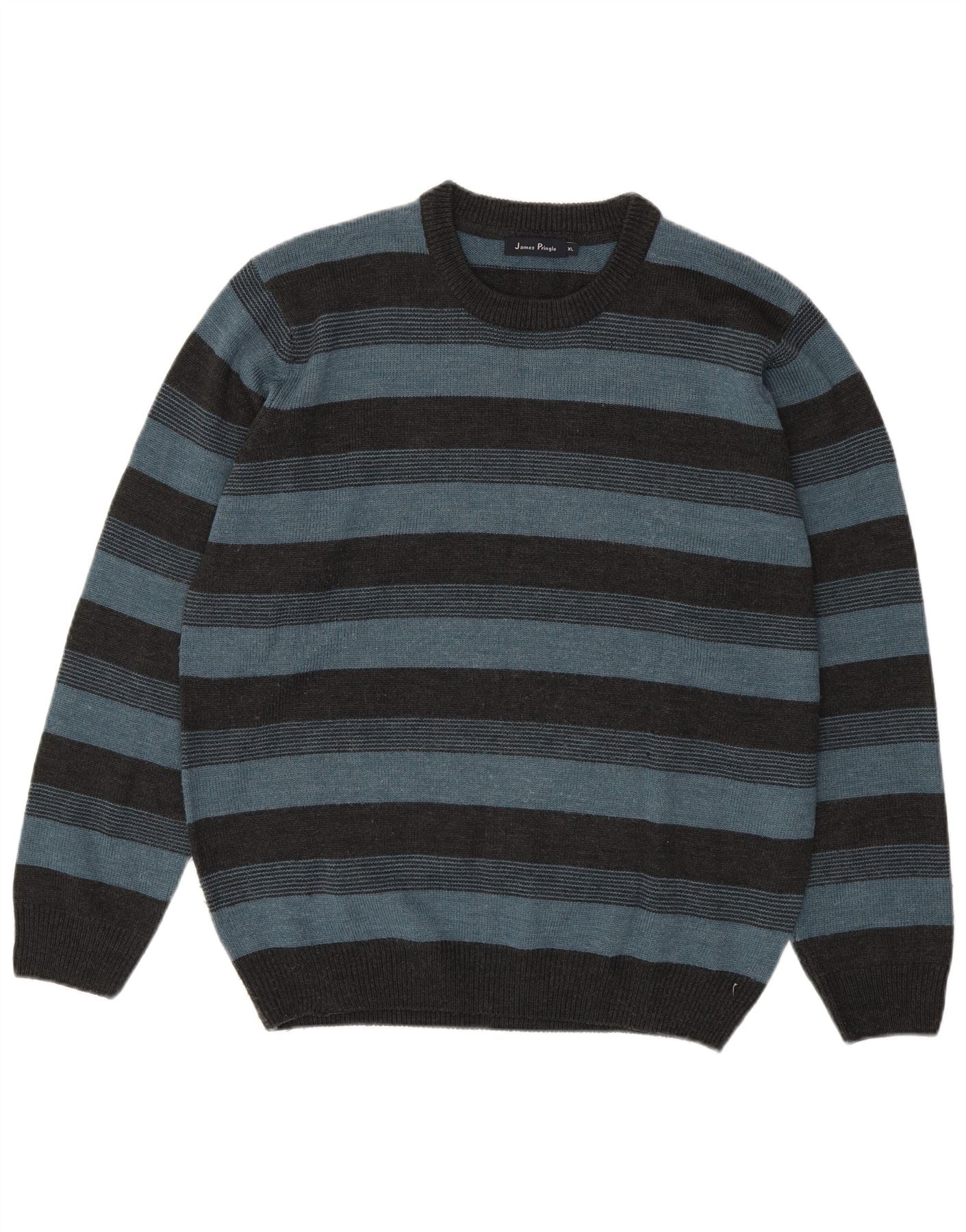 JAMES PRINGLE Mens Crew Neck Jumper Sweater XL Blue Striped Acrylic