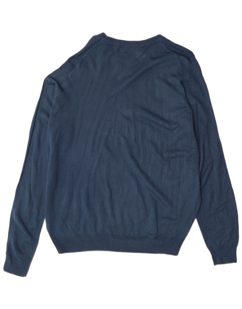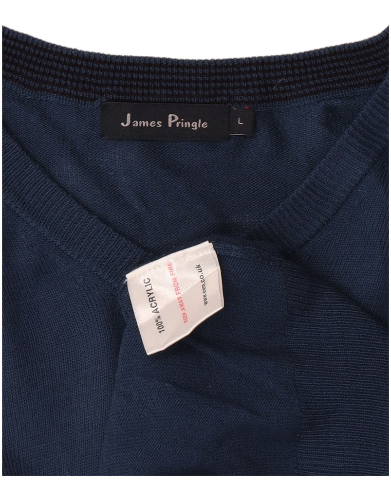JAMES PRINGLE Mens V-Neck Jumper Sweater Large Blue Acrylic