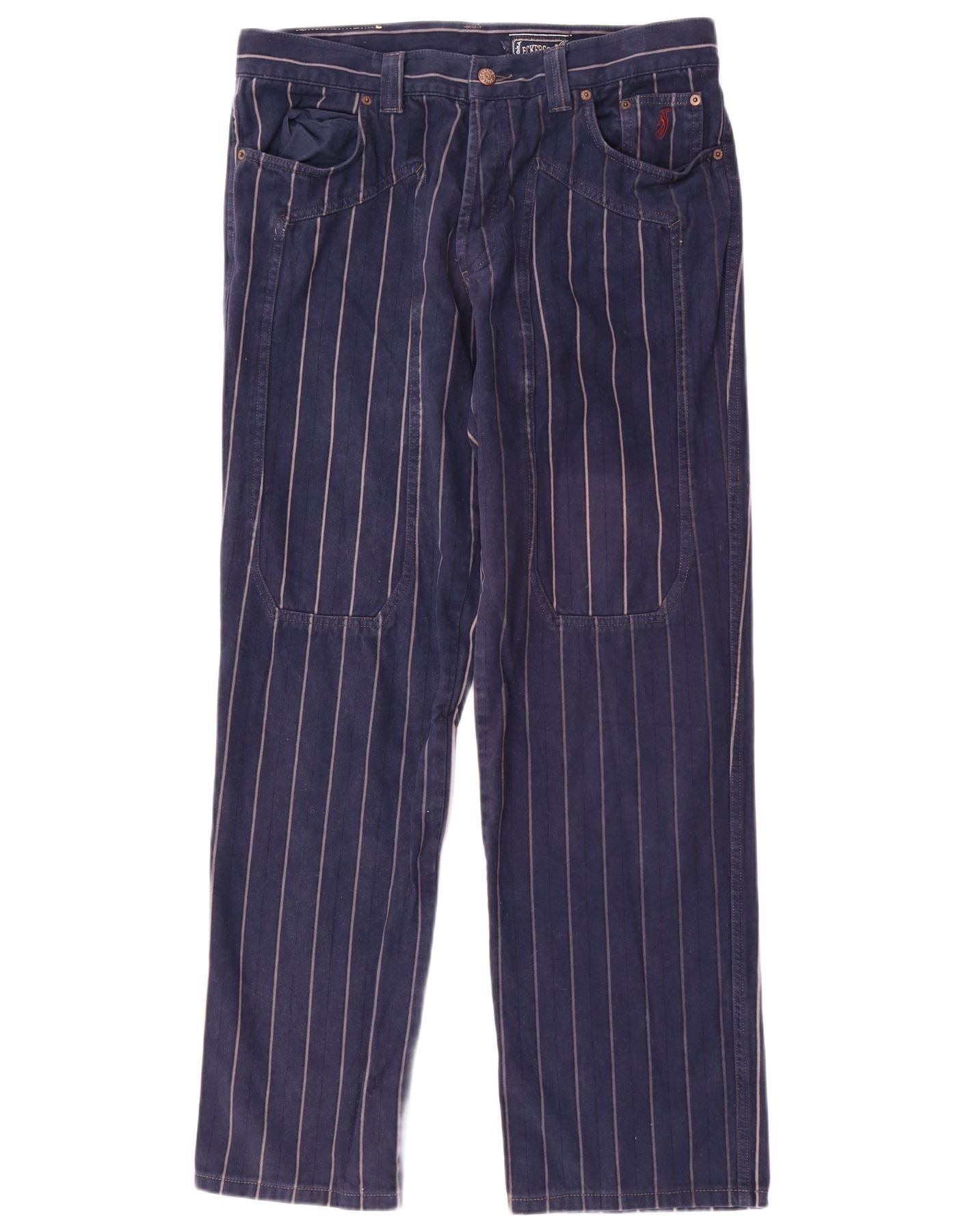 Pantaloni casual drepti pentru bărbați JECKERSON L38 L32 bumbac cu dungi bleumarin