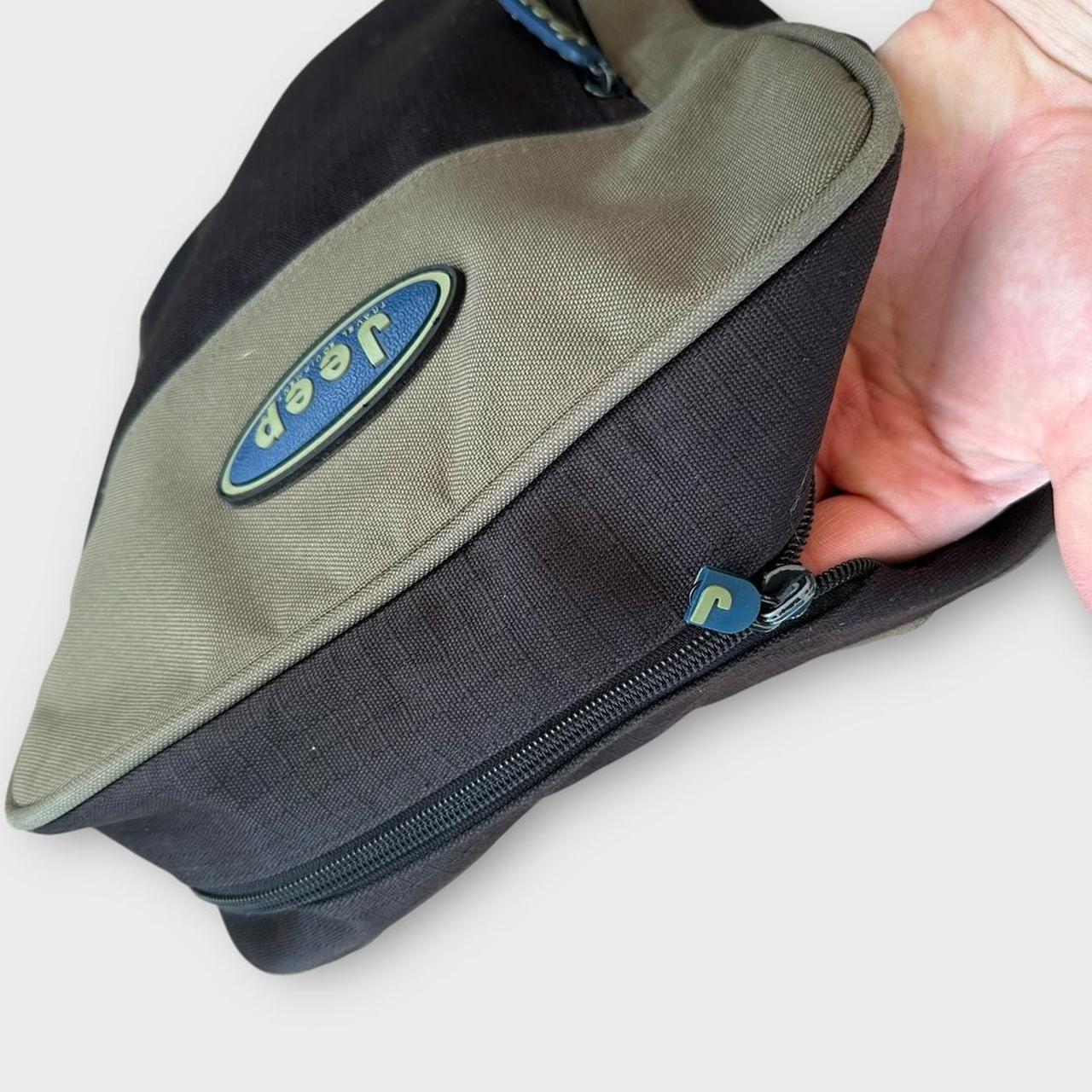 Geantă cu curea Y2K Jeep One de la începutul anilor 2000, în verde și negru, cu detalii cu logo pe tot cuprinsul