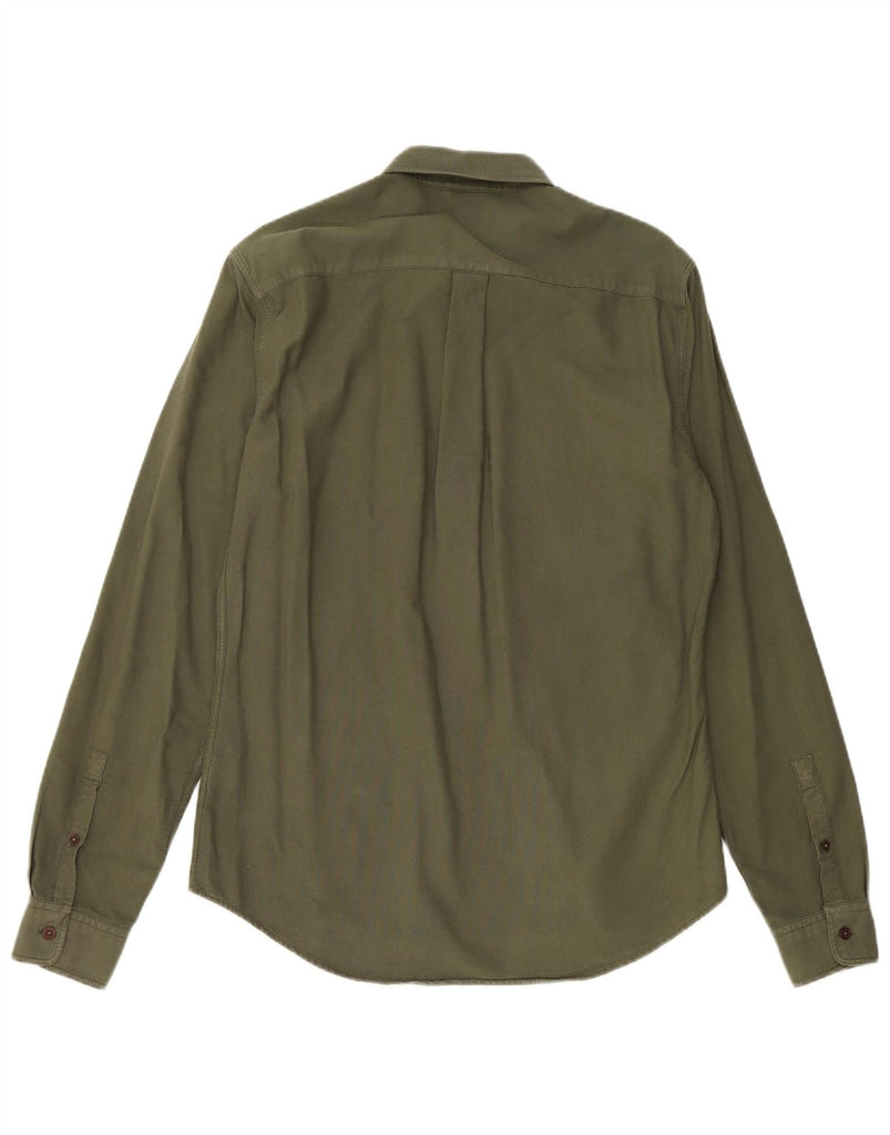 - AI Description: This Jigsaw mens shirt is crafted from 100 percent woven cotton, offering a comfortable feel. The collared neckline and full button-up front provide a classic look. Long sleeves finish with neat cuffs. It features a regular fit for easy wear. Subtle pockets add practical detail to this versatile green shirt.