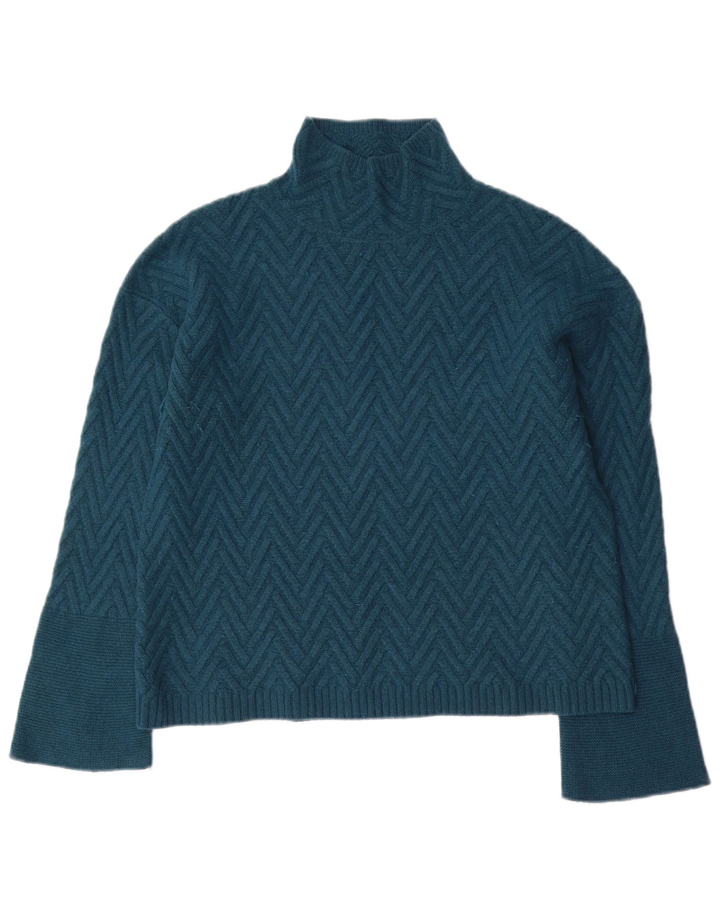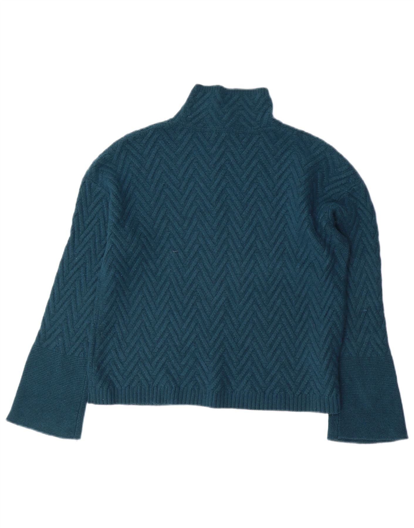 JIGSAW Womens Crop Turtle Neck Jumper Sweater UK 14 Medium Green Chevron
