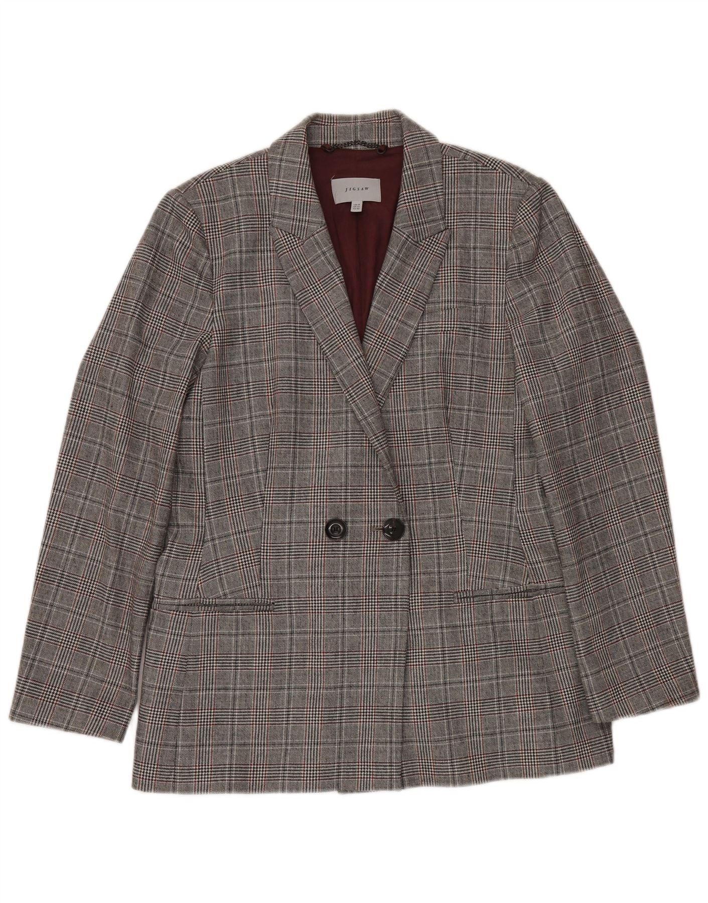 JIGSAW Jachetă pentru femei la dublu piept UK 14, mare, gri Houndstooth