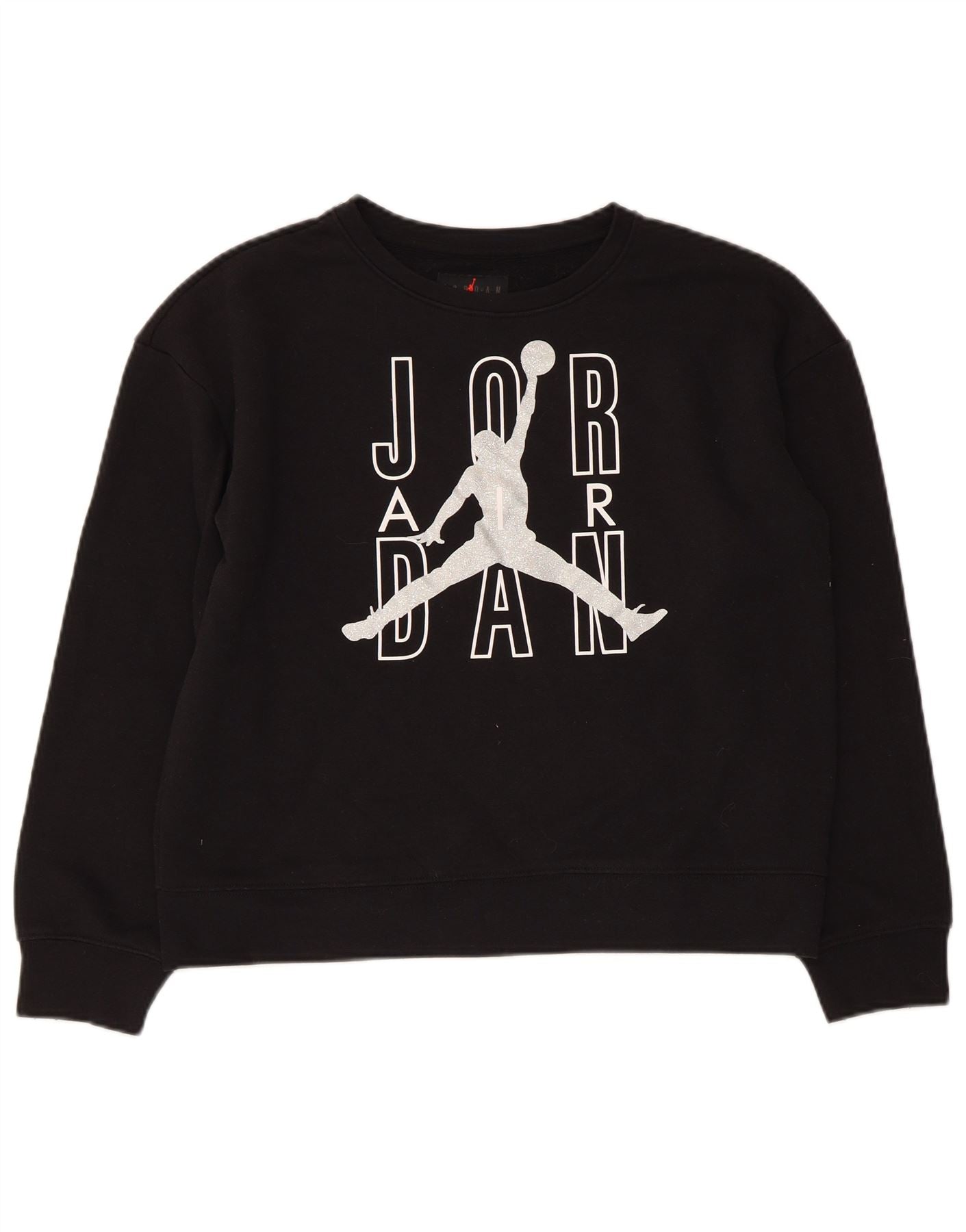 JORDAN Girls Graphic Sweatshirt Jumper 13-14 Years XL Black Cotton