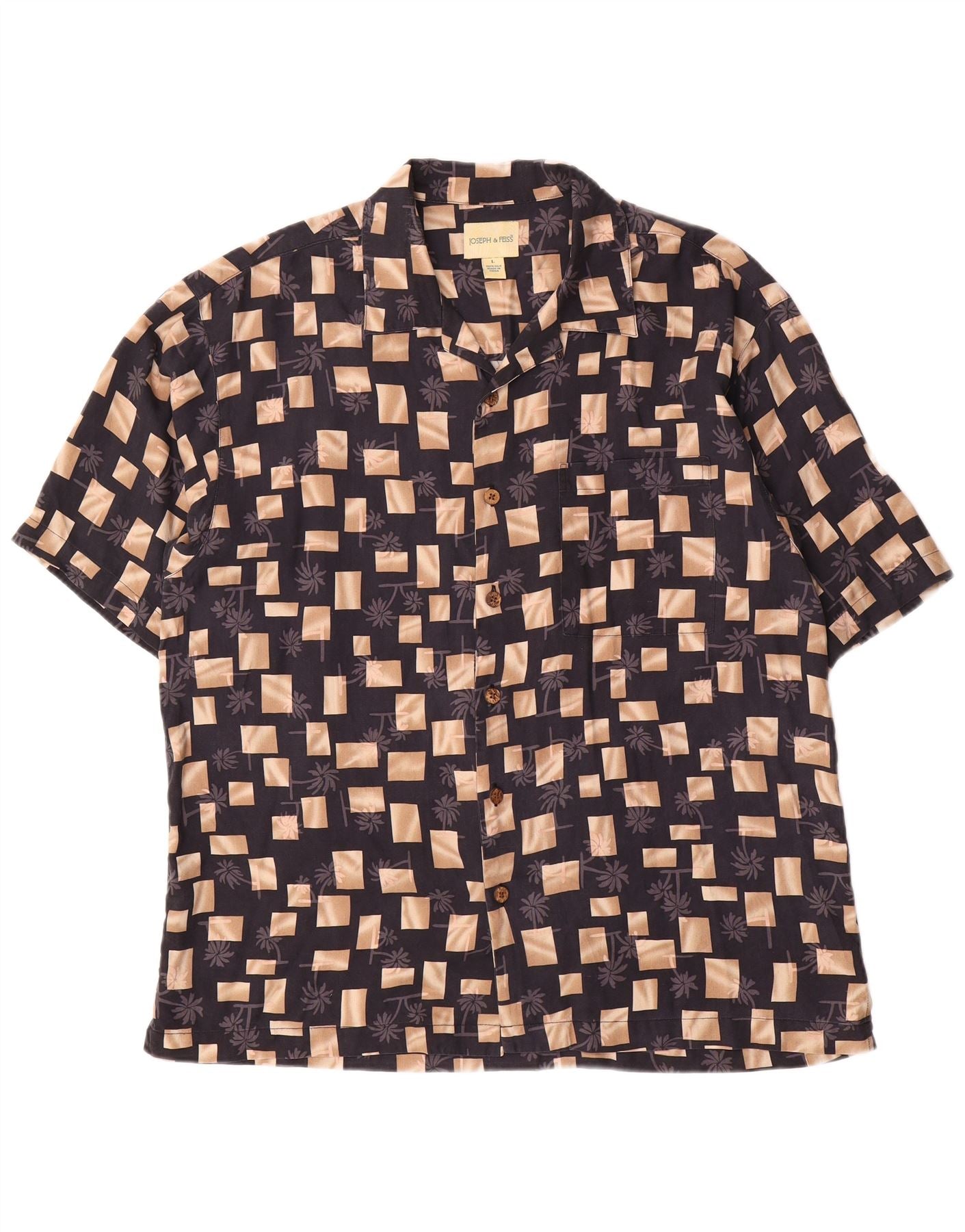 Cămașă cu mânecă scurtă pentru bărbați Joseph & Feiss, mătase geometrică neagră mare