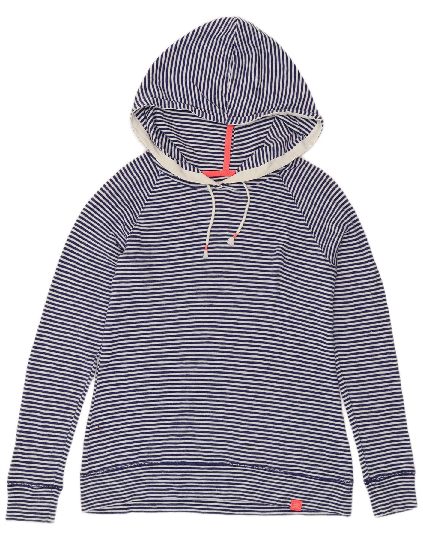 JOULES Womens Hooded Jumper Sweater UK 12 Medium Navy Blue Pinstripe