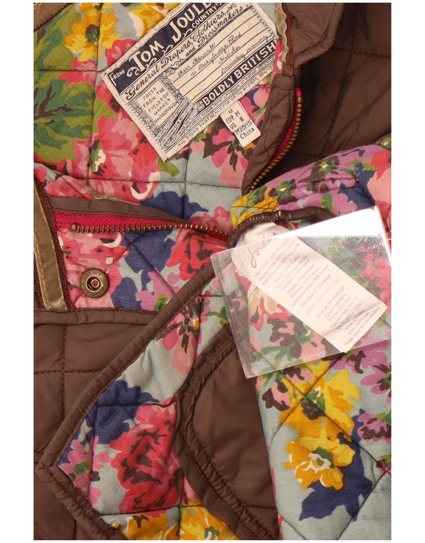 - Descriere AI: Această jachetă matlasată pentru femei Joules vine într-o țesătură amestecată maro bogat, cu un finisaj matlasat clasic. Are un decolteu cu guler și o închidere completă cu nasturi. Mânecile lungi oferă o acoperire largă. Potrivirea obișnuită asigură o purtare confortabilă. Buzunarele plasate din velur adaugă un contrast tactil și detalii practice. Jacheta este complet căptușită pentru un plus de căldură și confort.
