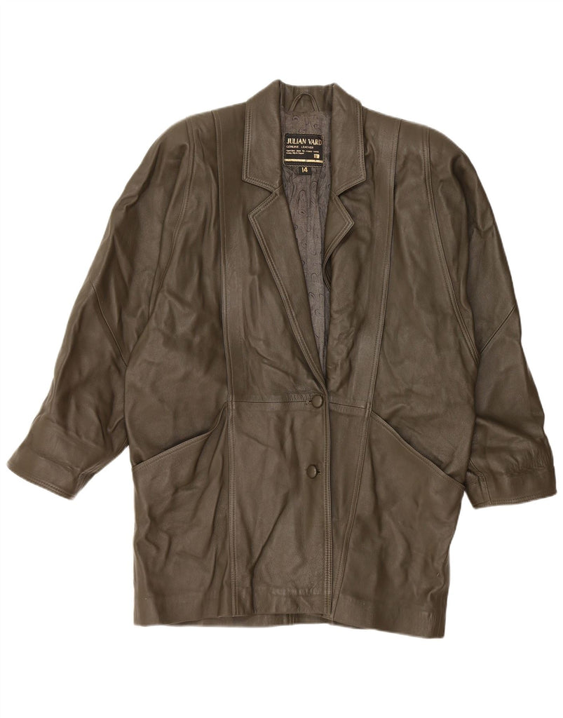 JULIAN VARD Palton din piele pentru femei UK 14, mare, verde, piele